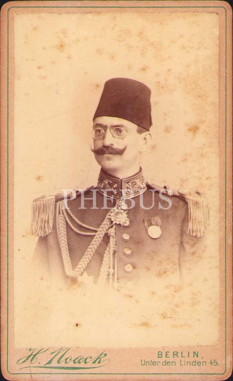Madalyalı Osmanlı askerinin kabin fotoğrafı, H. Noack Fotoğrafhanesi-Berlin, 6x10 cm