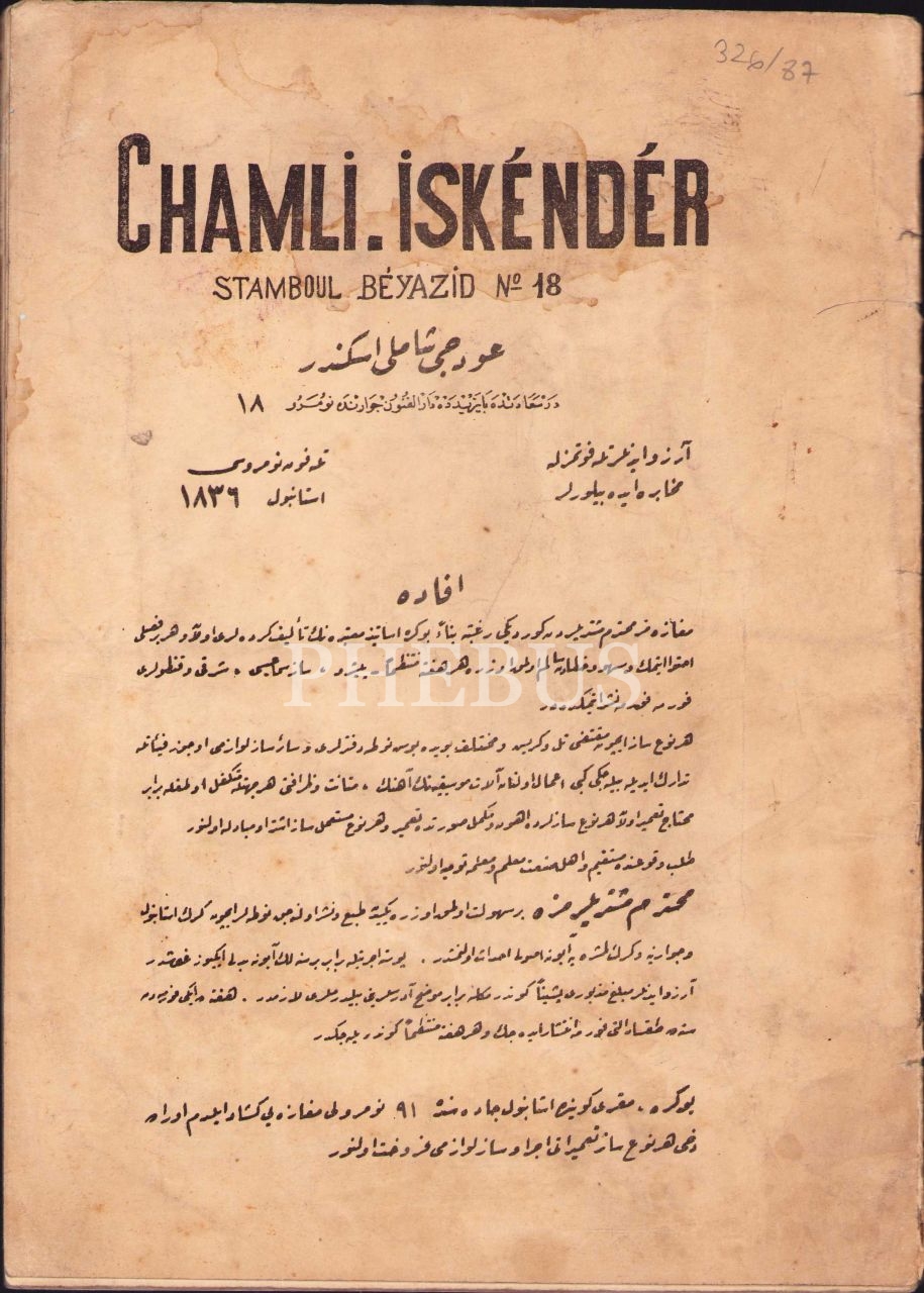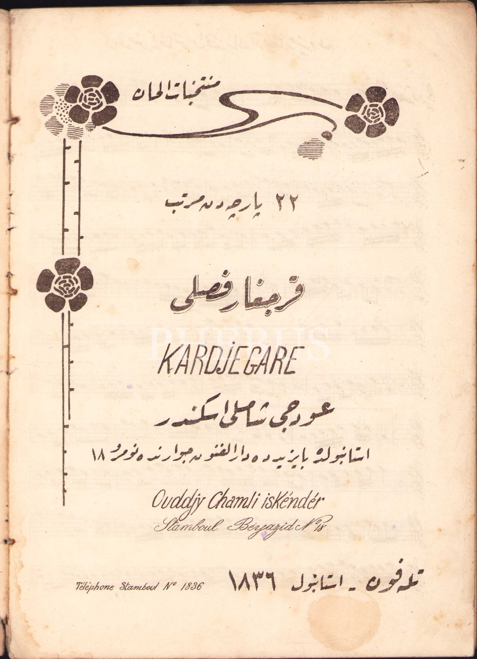 Udcu Şamlı İskender'den Osmanlıca Karcigar Faslı, 32 s., 20x28 cm, kapağı hafif yıpranmış haliyle