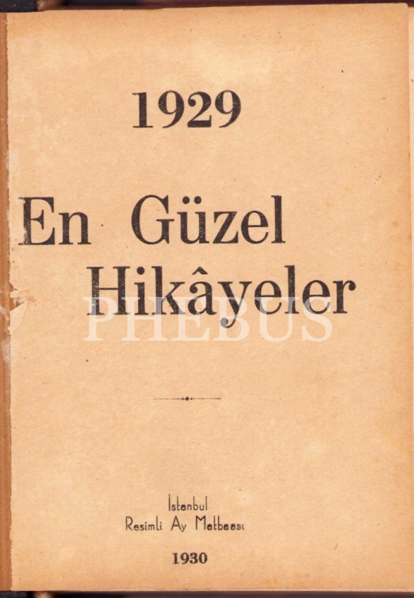 1929 En Güzek Hikâyeler, Resimli Ay Matbaası, İstanbul 1930, 165 s., 12x16 cm