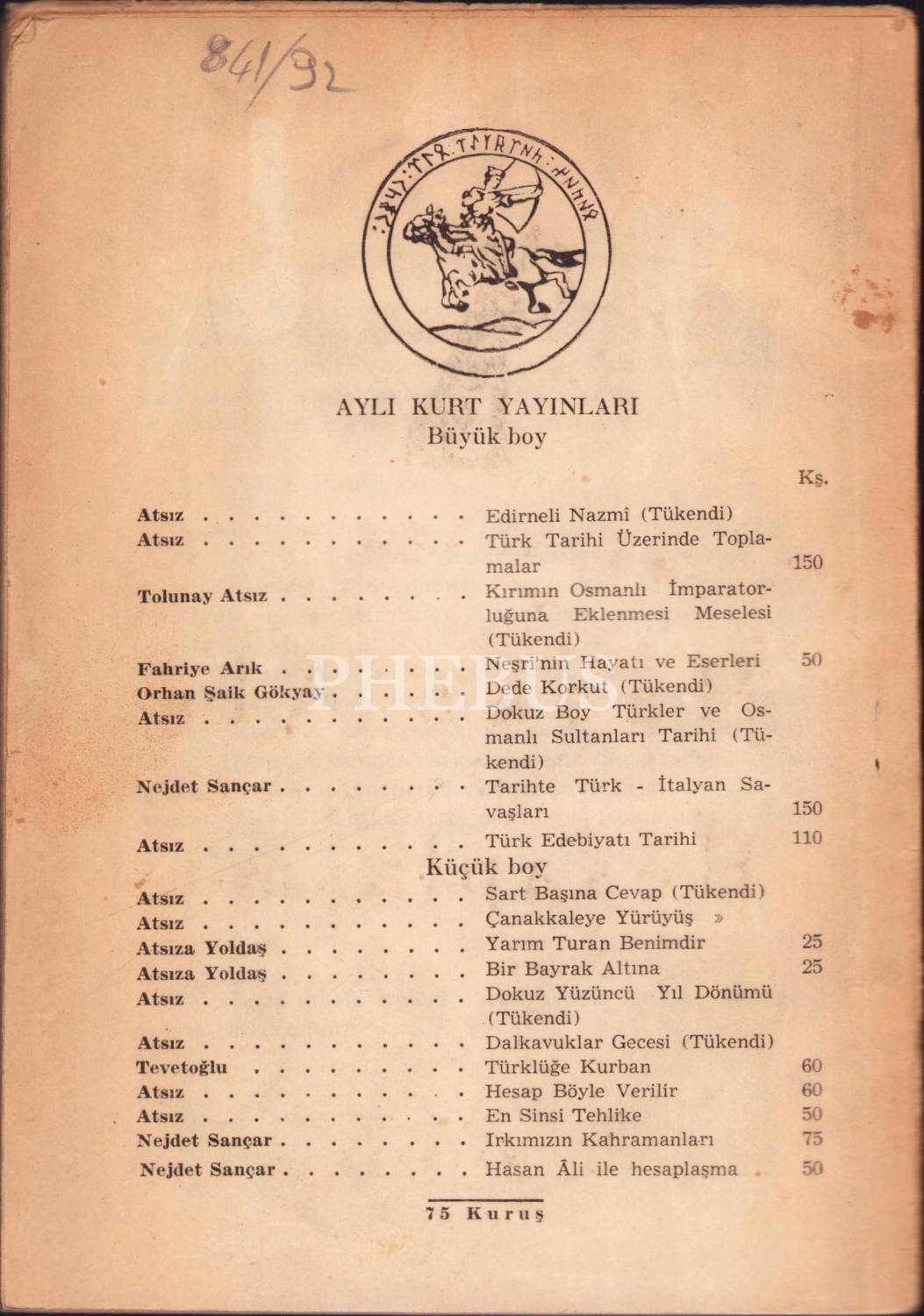 Hasan Âli ile Hesaplaşma, Nejdet Sançar, Işıl Matbaası, İstanbul 1947, 44 s., 14x20 cm