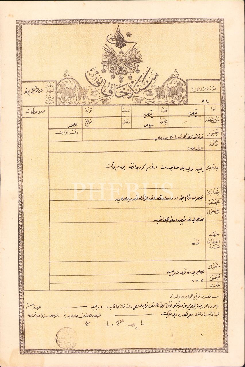 Osmanlıca Sened-i Hakanî antetli mülk oda tapusu, Kayseri 1318, 26x39 cm