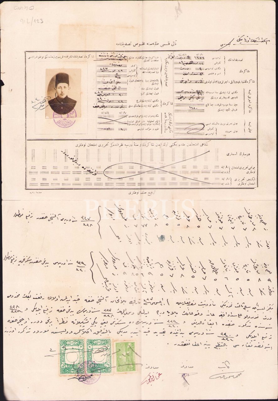 Üsküdar Erkek Ortamektebi'nden fotoğraflı ve 1340 tarihli Osmanlıca tasdikname, 28x41 cm, kenarları hafif yırtık haliyle