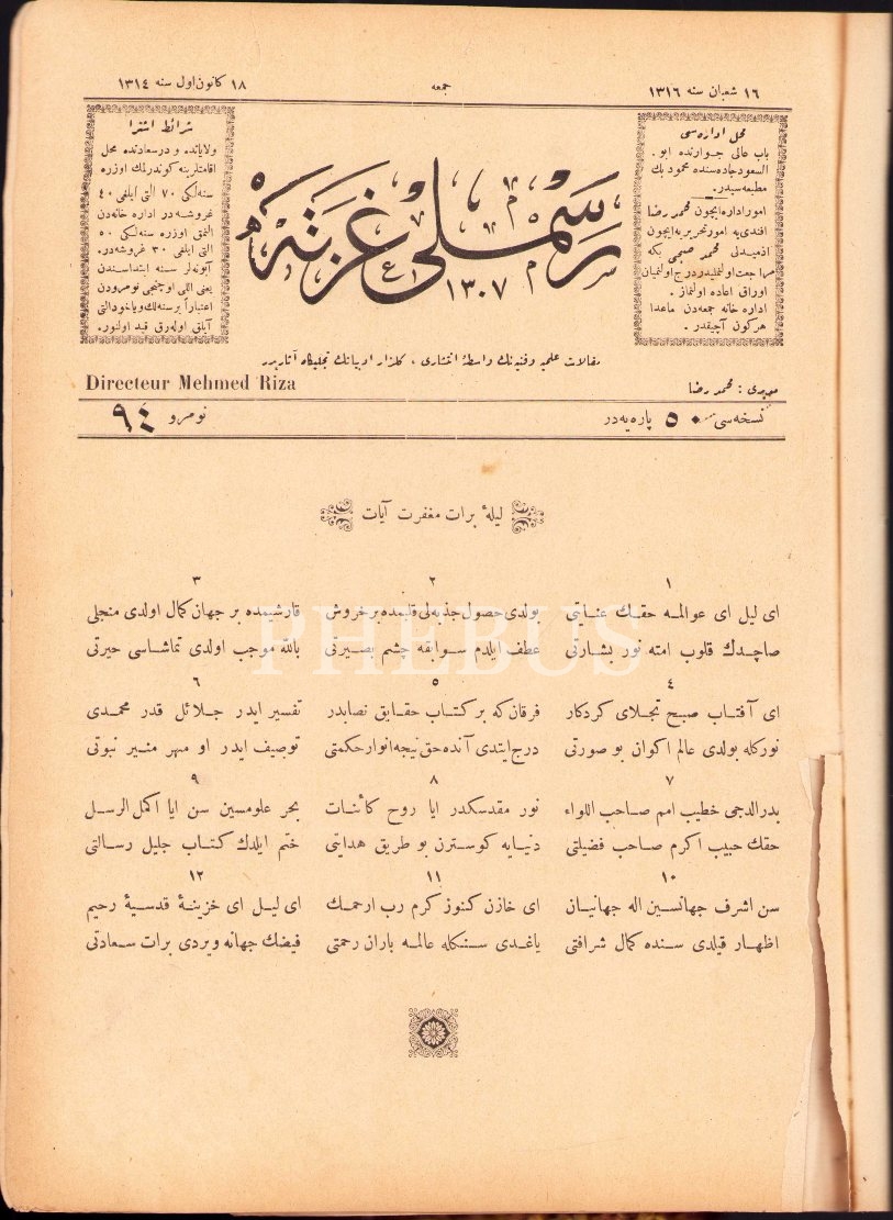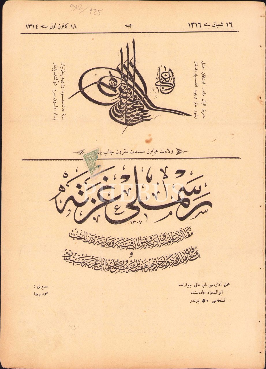 Osmanlıca Resimli Gazete 94. sayı, 18 Kanunuevvel 1314, 24x33 cm, kenarları yıpranmış haliyle