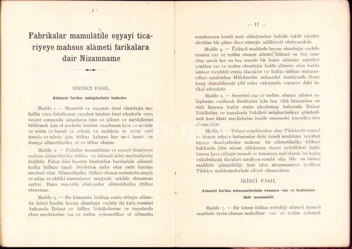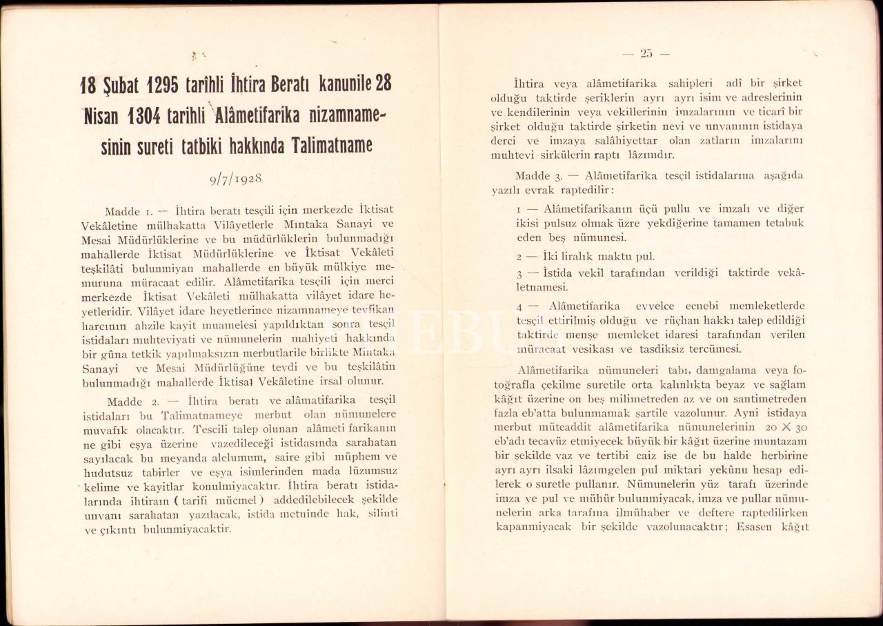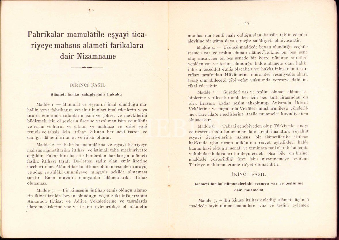 "Alâmeti Farika Nizamnamesi ve Bunların sureti tatbiki hakkında Talimatname"