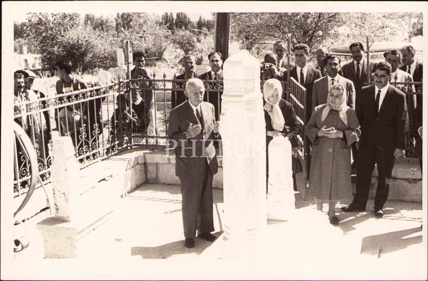 İsmet İnönü ve beraberindekilerin mezar ziyaretinden, 1965 tarihli, 12x18 cm