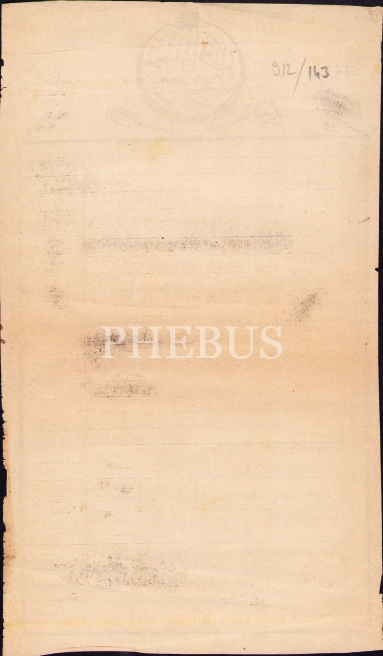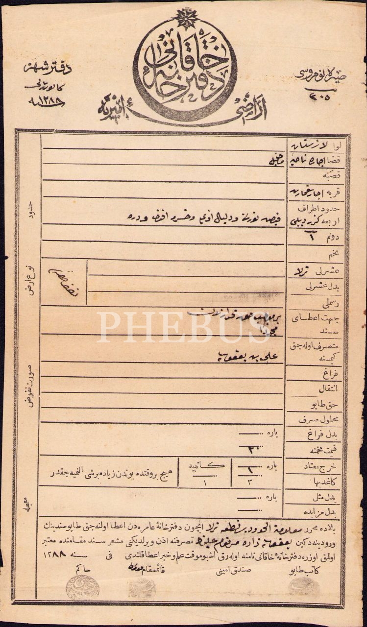 Osmanlıca Defterhane-i Hakanî antetli öşürlü tarla tapu senedi, Lazistan 1288, 16x28 cm