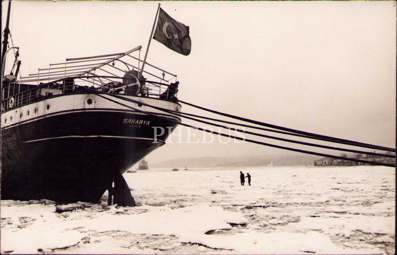 1954 yılında buz kütleleri ile kaplanan İstanbul Boğazı, Foto W. Sender-Constantinople damgalı