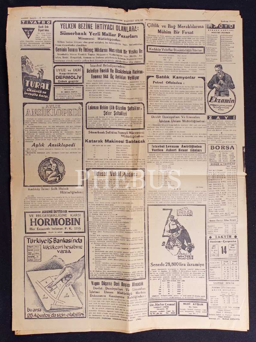 Manşetlerden bazısı, "Berlinde binlerce ölü var", "Caen'da Alman karşı taarruzu şiddetlendi", "Bulgaristanda umumi seferberlik vaziyeti ilân edildi", "Dalmaçya ve Arnavutluğa ihraç yapıldı" şeklindedir.