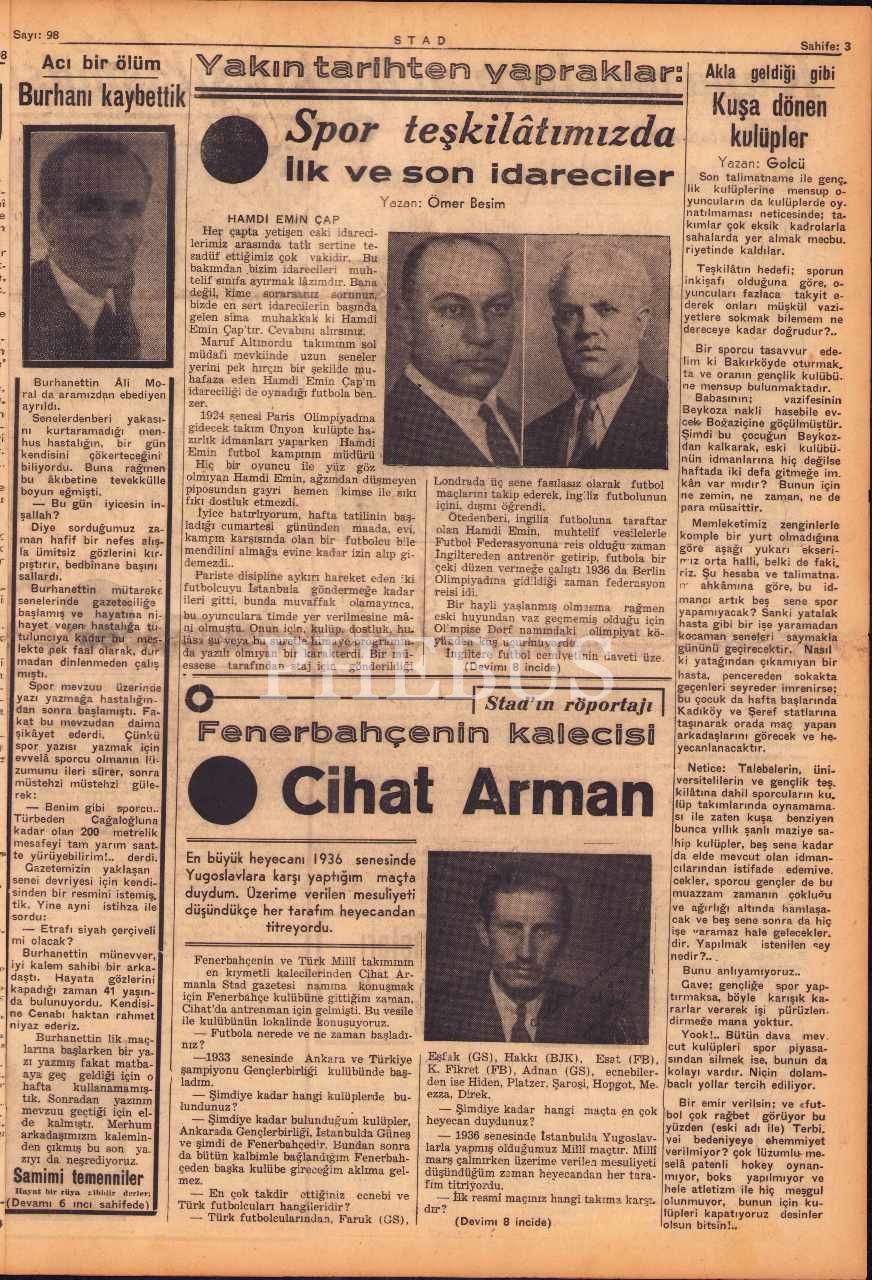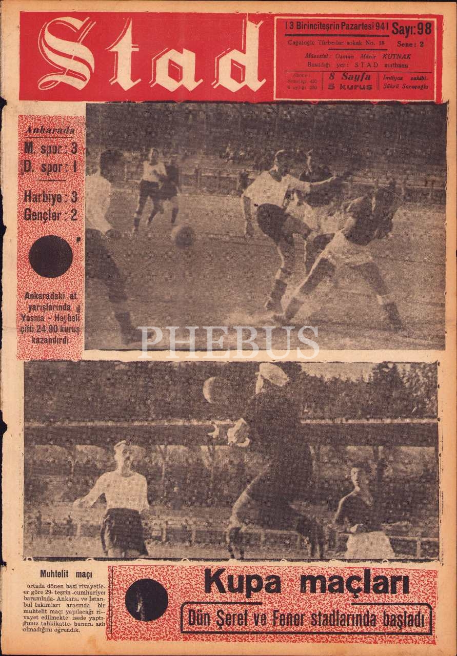 Stad spor gazetesinin 98. sayısı, 13 Birinciteşrin 941, 28x40 cm