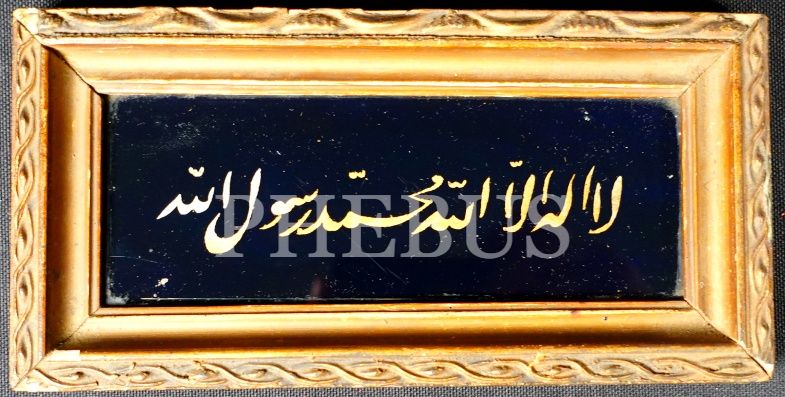Cam altı Ta'lik kelime-i tevhid, "La İlahe İllallah Muhammed Resulullah", çerçeveli, çerçeve: 10x19 cm
