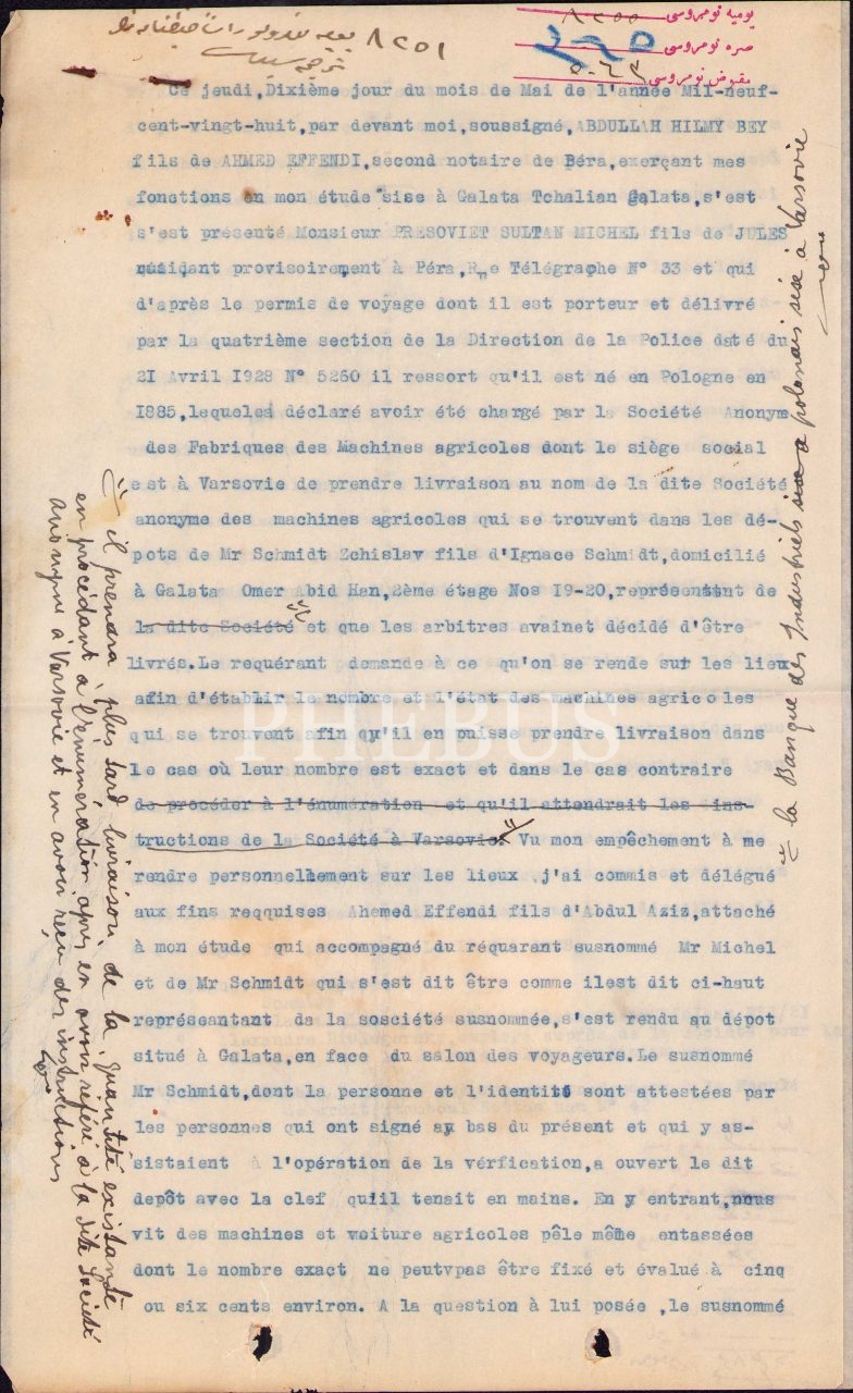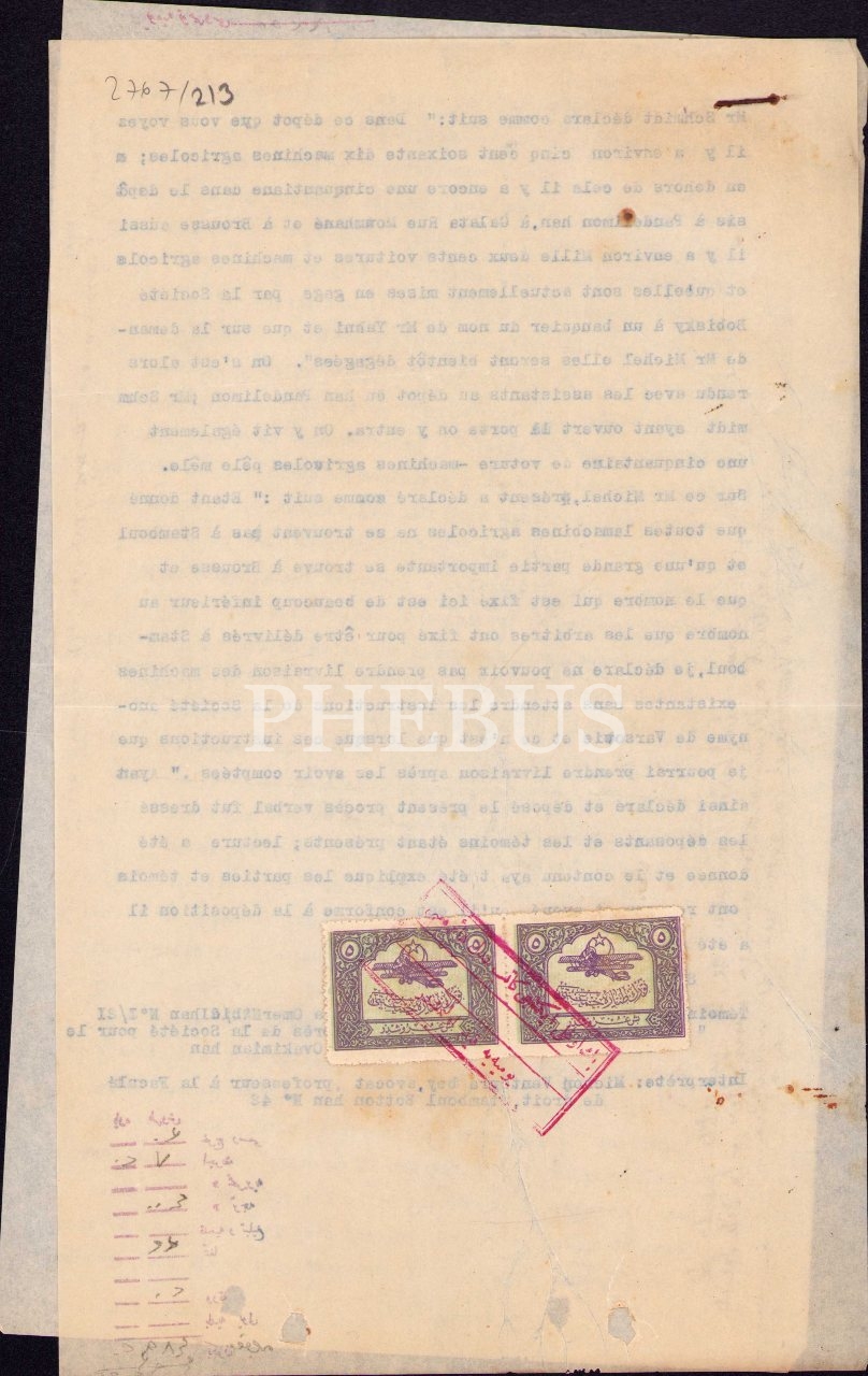 Türk Tayyare Cemiyeti pullu, 1928 tarihli 2 sayfalık Fransızca evrak, 20x33 cm