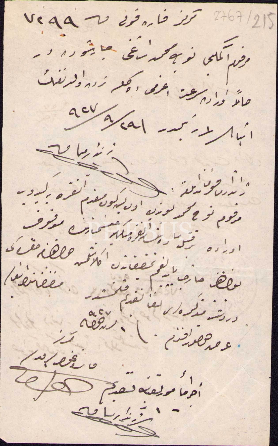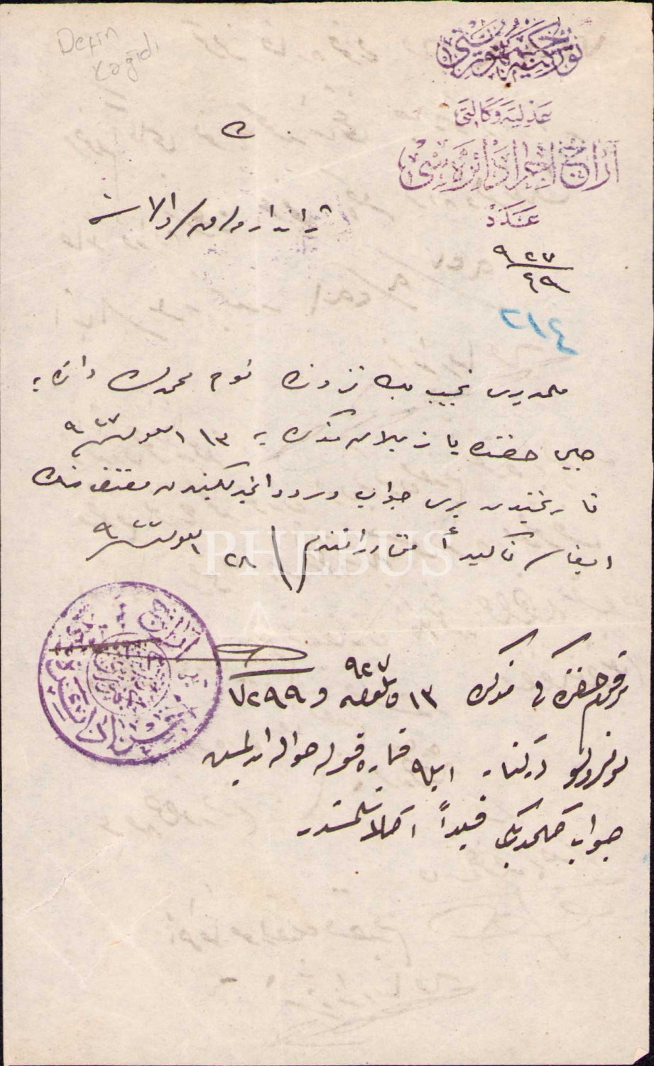 Osmanlıca Adliye Vekaleti Arac? İcra Dairesi antetli ve 1927 tarihli jandarma yazışma evrağı, 10x17 cm