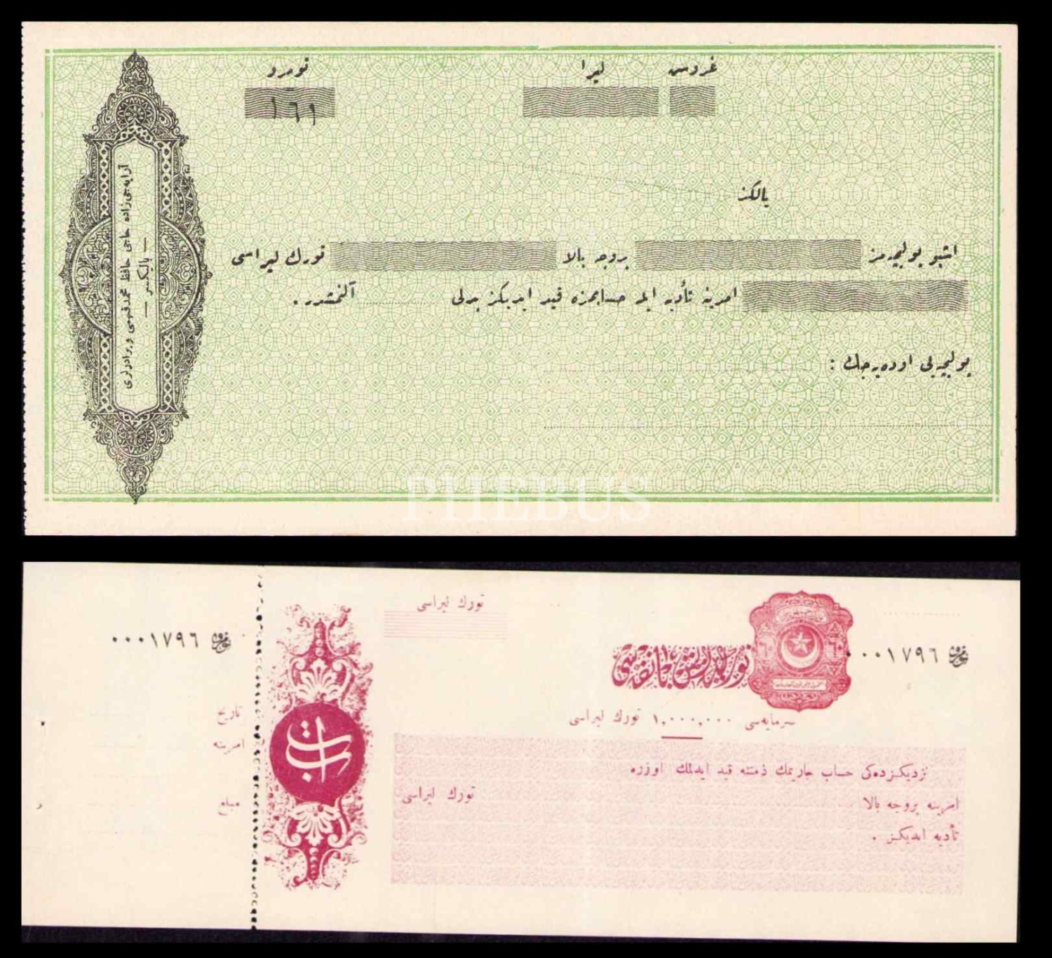 Türk İş Bankası ile Arabacızade Hacı Hafız Mehmed Fehmi (Balıkesir) şirketine ait boş makbuzlar, 8x22 cm ve 10x28 cm