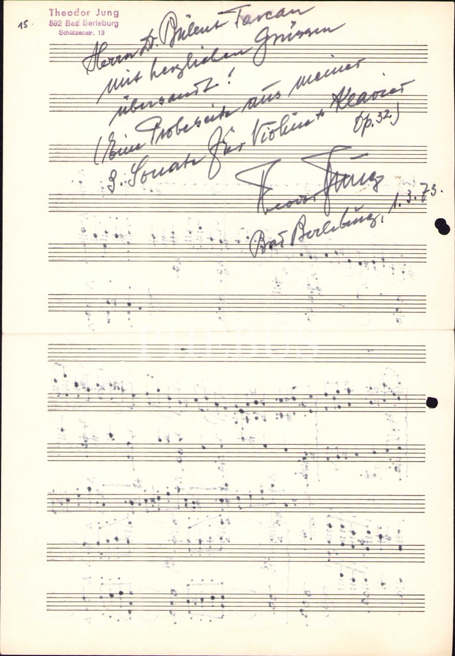El yazısıyla nota sayfası, Theodor Jung damgalı, 20x29 cm