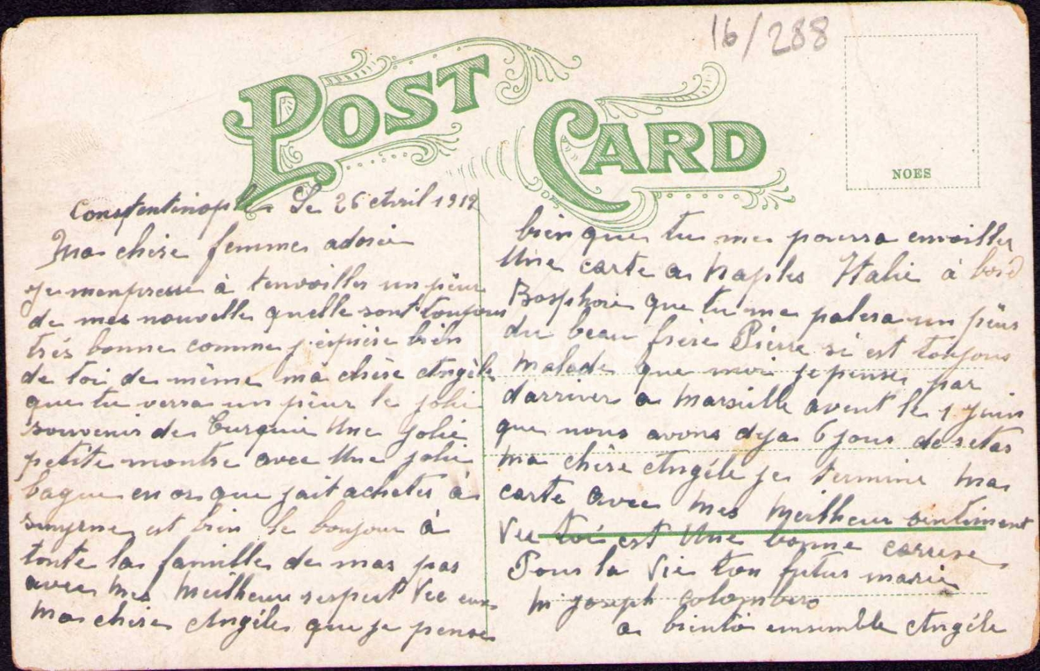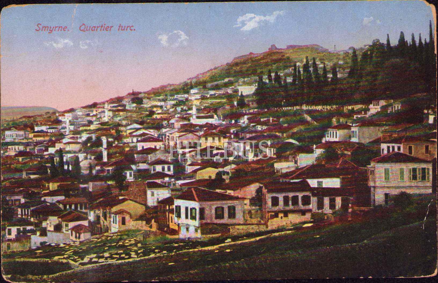 "Smyrne [İzmir] Türk mahallesi" görselli mektup kartı, Constantinople 1912, kenarları soyulmuş haliyle