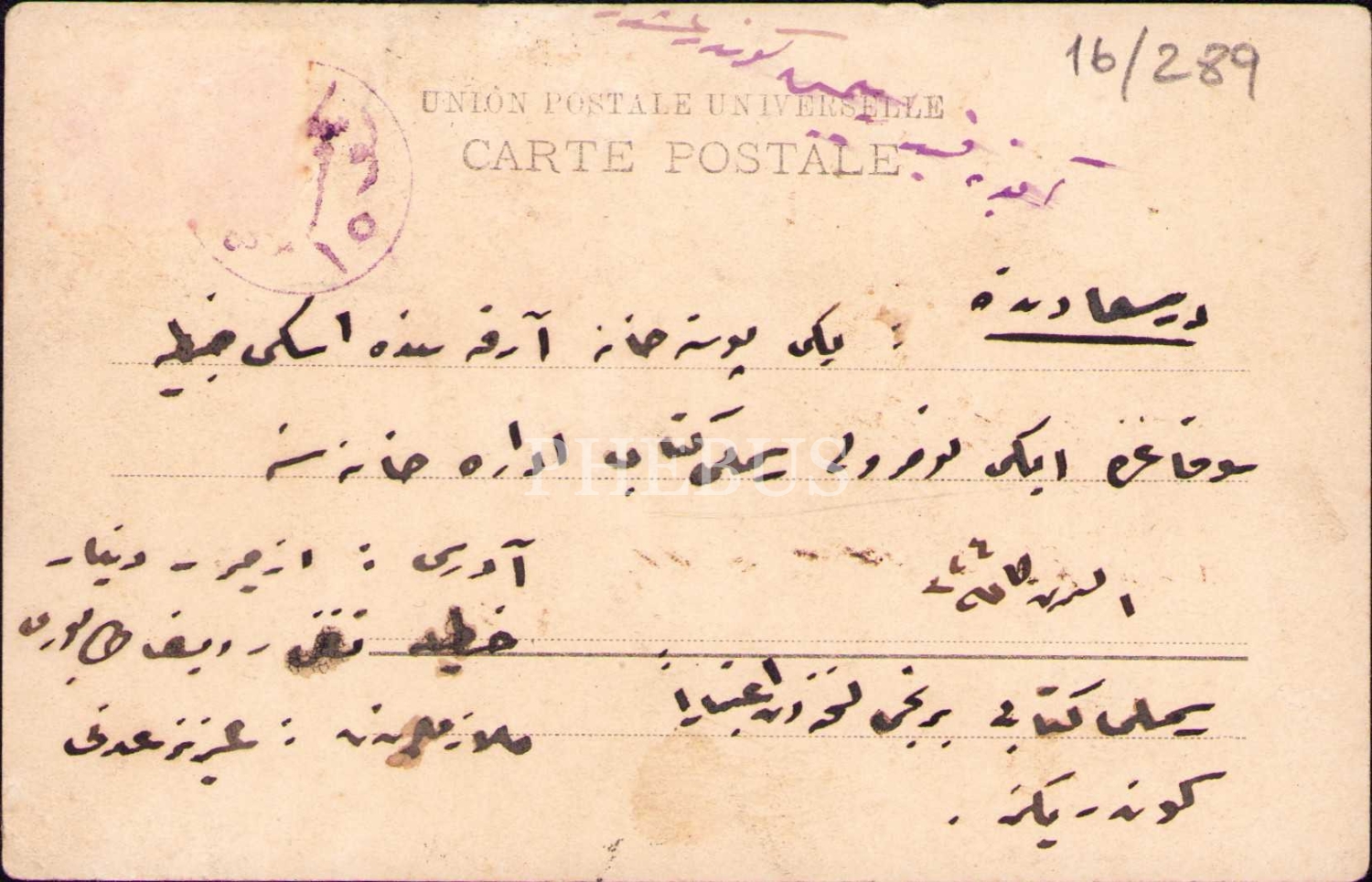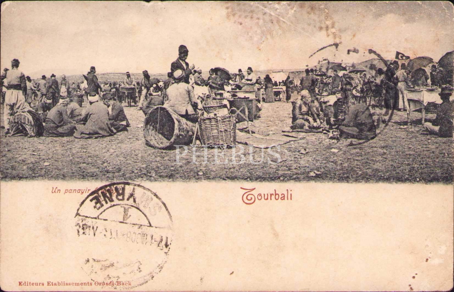 İzmir- Torbalı, Panayır/Pazar görselli postadan geçmiş Osmanlıca kartpostal, üst köşesi kırık haliyle