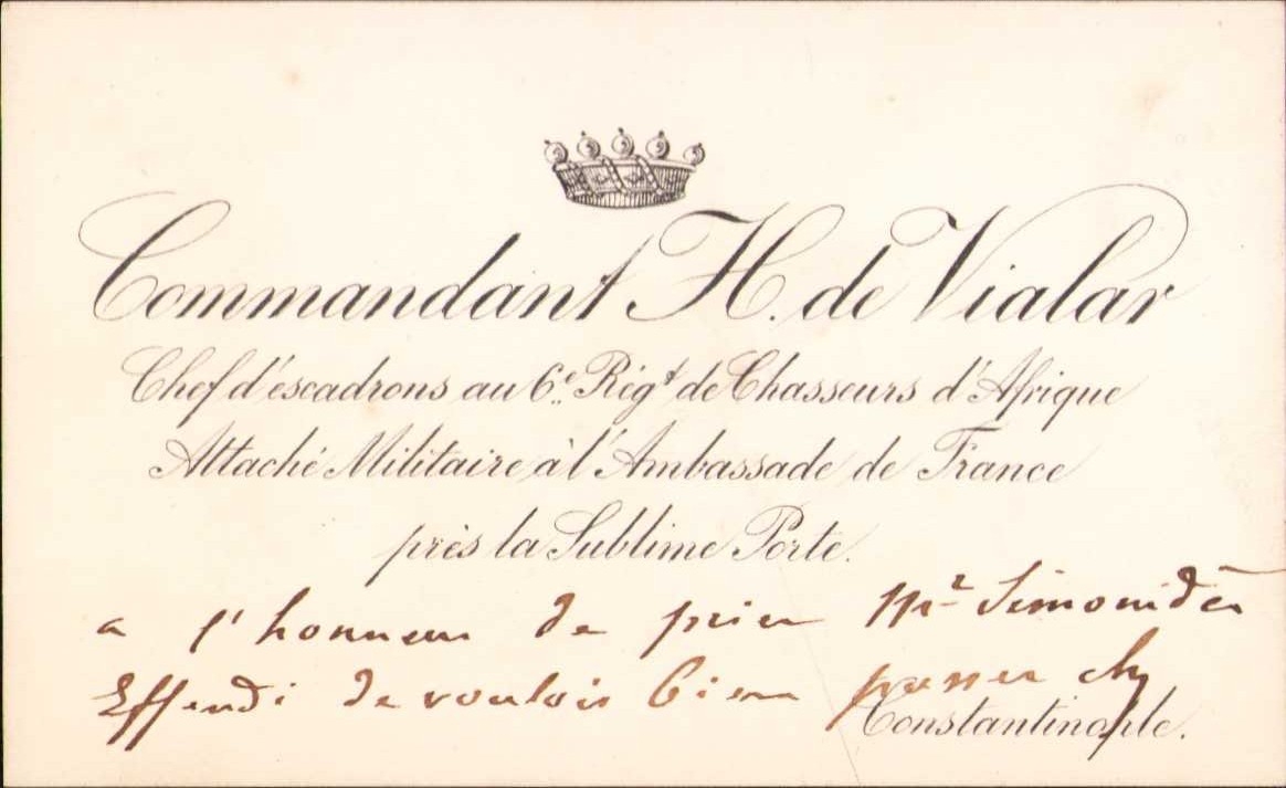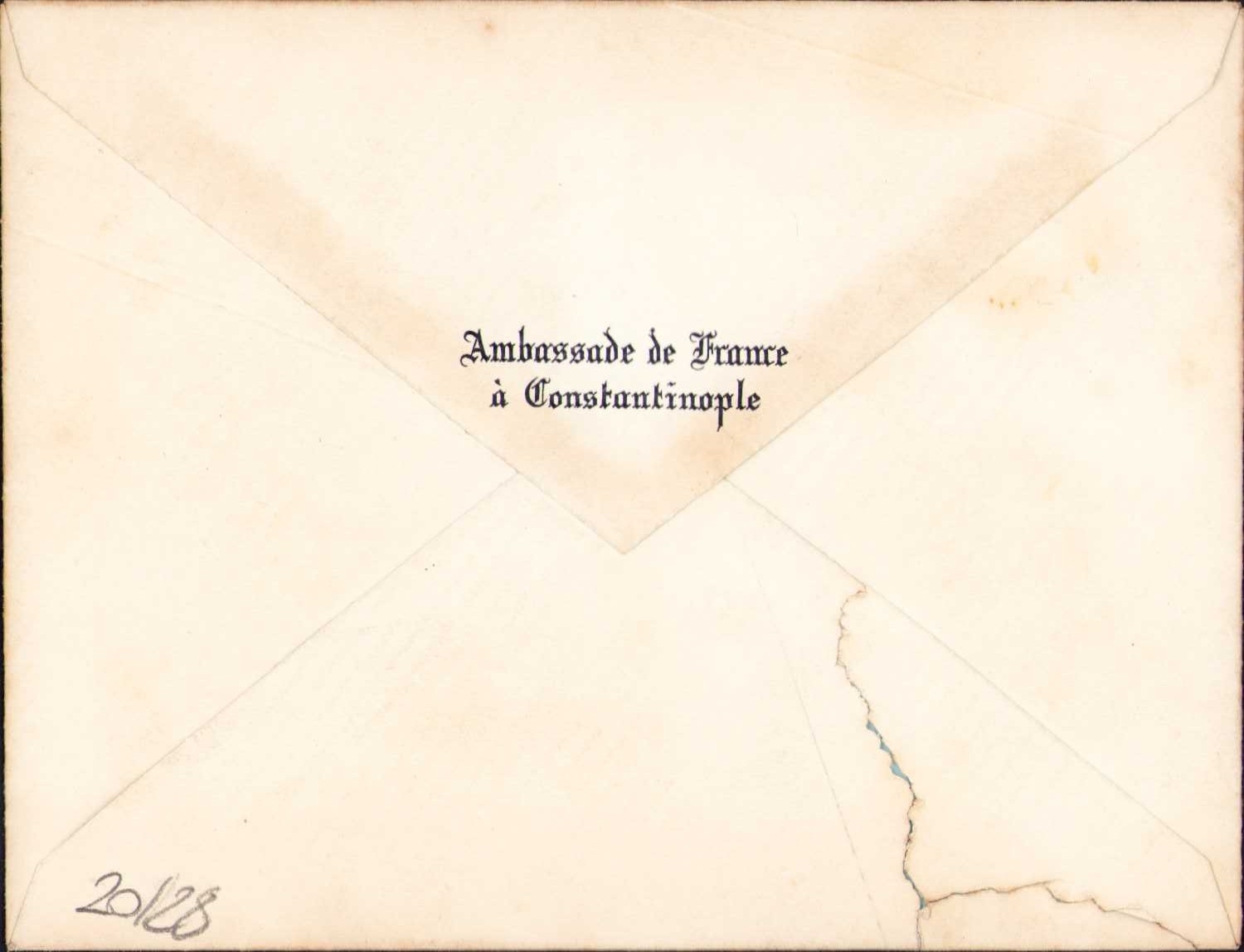 Constantinople Fransız Konslolosluğu antetli zarf, içinde Fransa askeri ateşenin kartvizit, 13x10cm