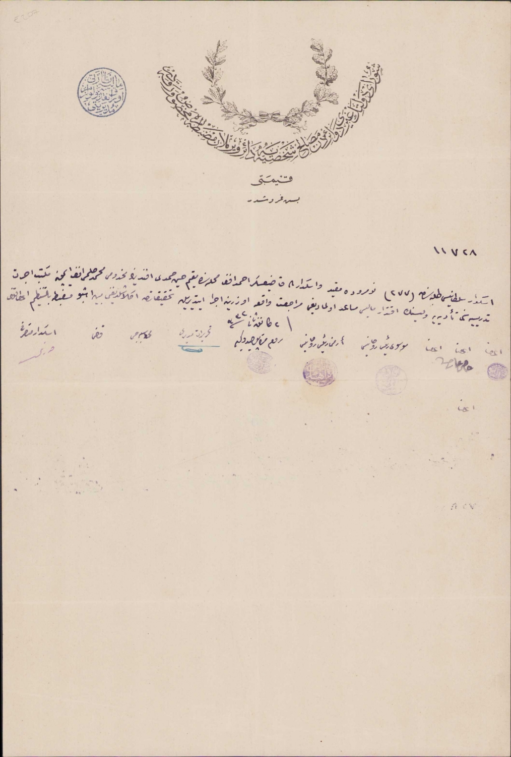 Osmanlı Şurayı Devlet’in gayri daireden mesalih şahsiyeti daire verilen mazbataya mahsus varaka, 27x40cm