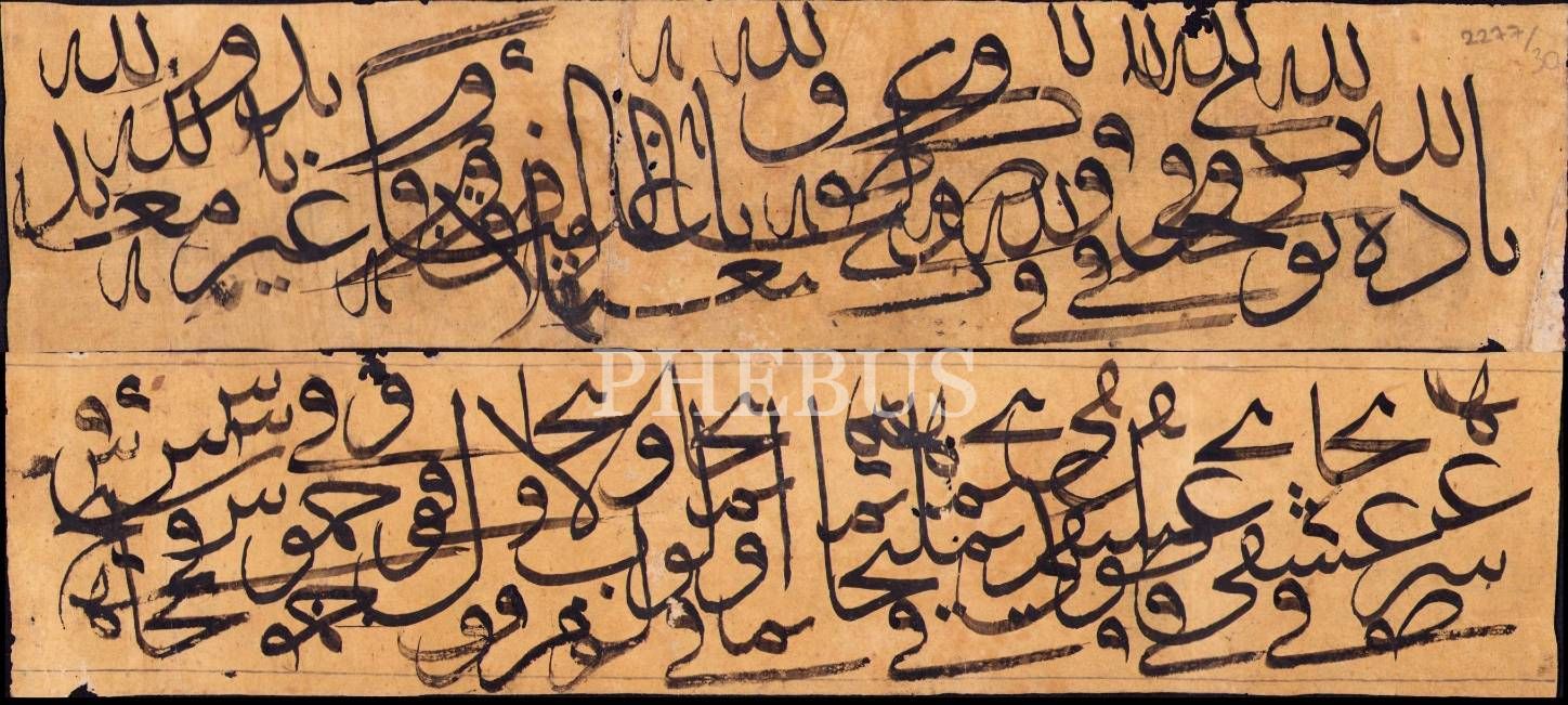 Arkalı önlü hoca işi sülüs karalama, 8x35 cm, kopuklar mevcut haliyle