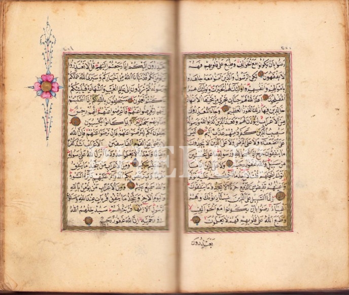 Deri cildinde el-Hac Hafız Salih'in hattıyla 1248 tarihli el yazması Kur'ân-ı Kerîm, 12x19 cm