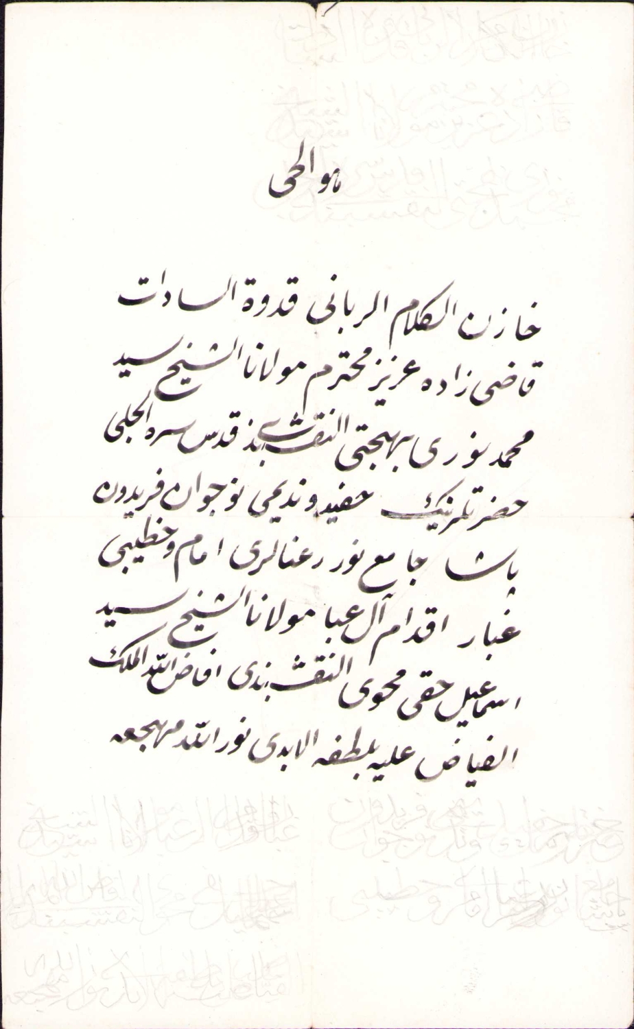 Şiir, "Hâzinu'l-kelâmi'r-rabbânî kudvetü's-sâdât, Kadızâde Aziz muhterem Mevlânâ eş-Şeyh Seyyid, Muhammed Nuri Behcetî en-Nakşibendi kuddise sırruhu el-Halebî, Hazretlerinin hafîd u nedîmi nev-civân Feridun" şeklinde başlamaktadır.