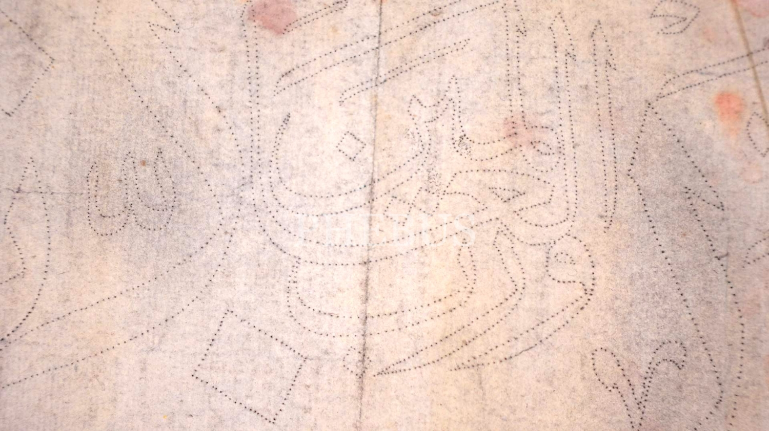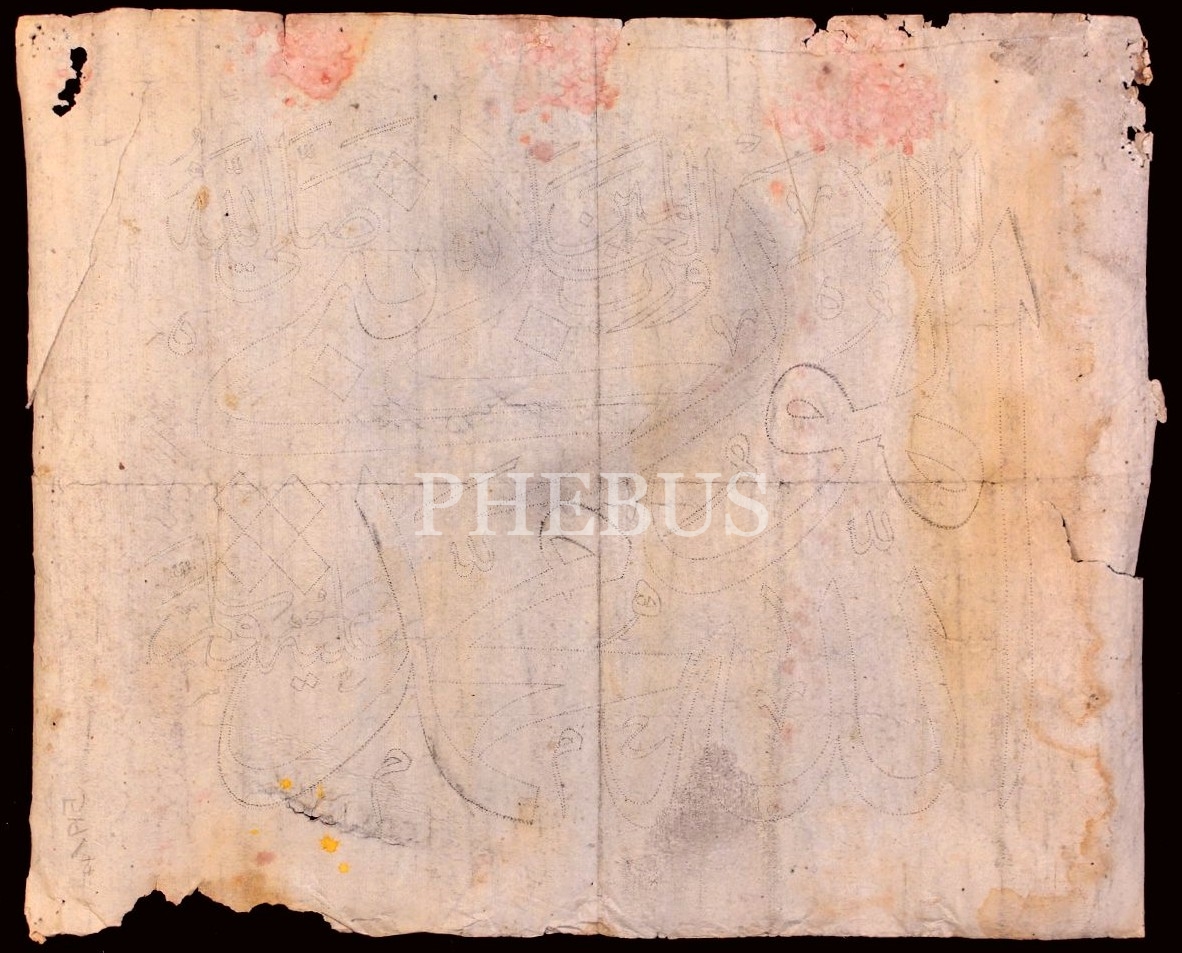 İğneli kalıpla sülüs yazı: "Allah- Muhammed- Hüve- Lâ ilâhe illâ Rabbü'l-Âlemîn", 40x50 cm