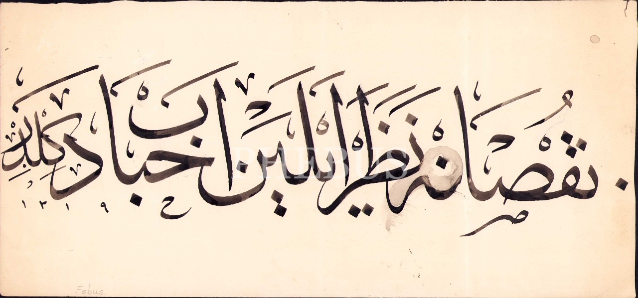 1319 tarihli hoca işi celî sülüs yazı: "Noksana nazar eyleyen ahbâb değildir", 19x41 cm