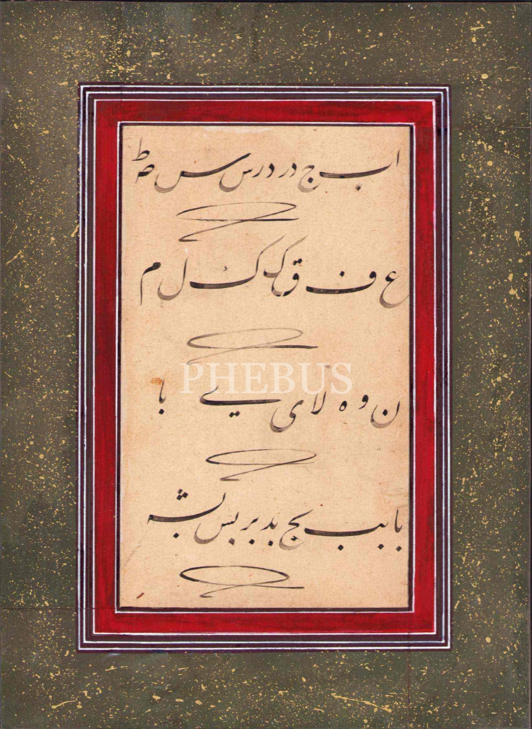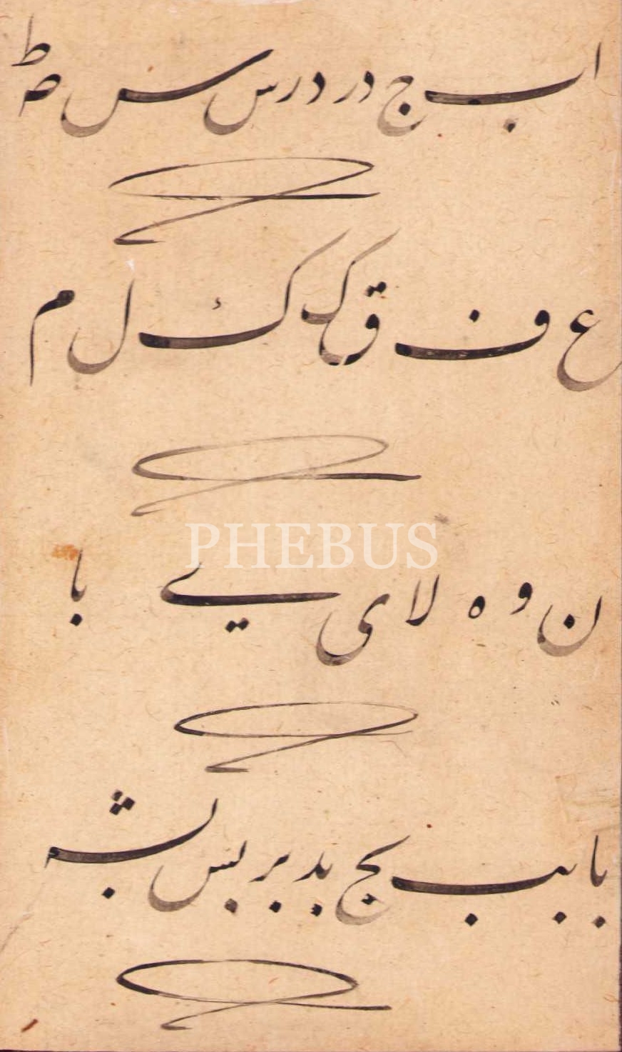 Hoca işi ta'lik hurufat meşki, yazı: 11x19 cm
