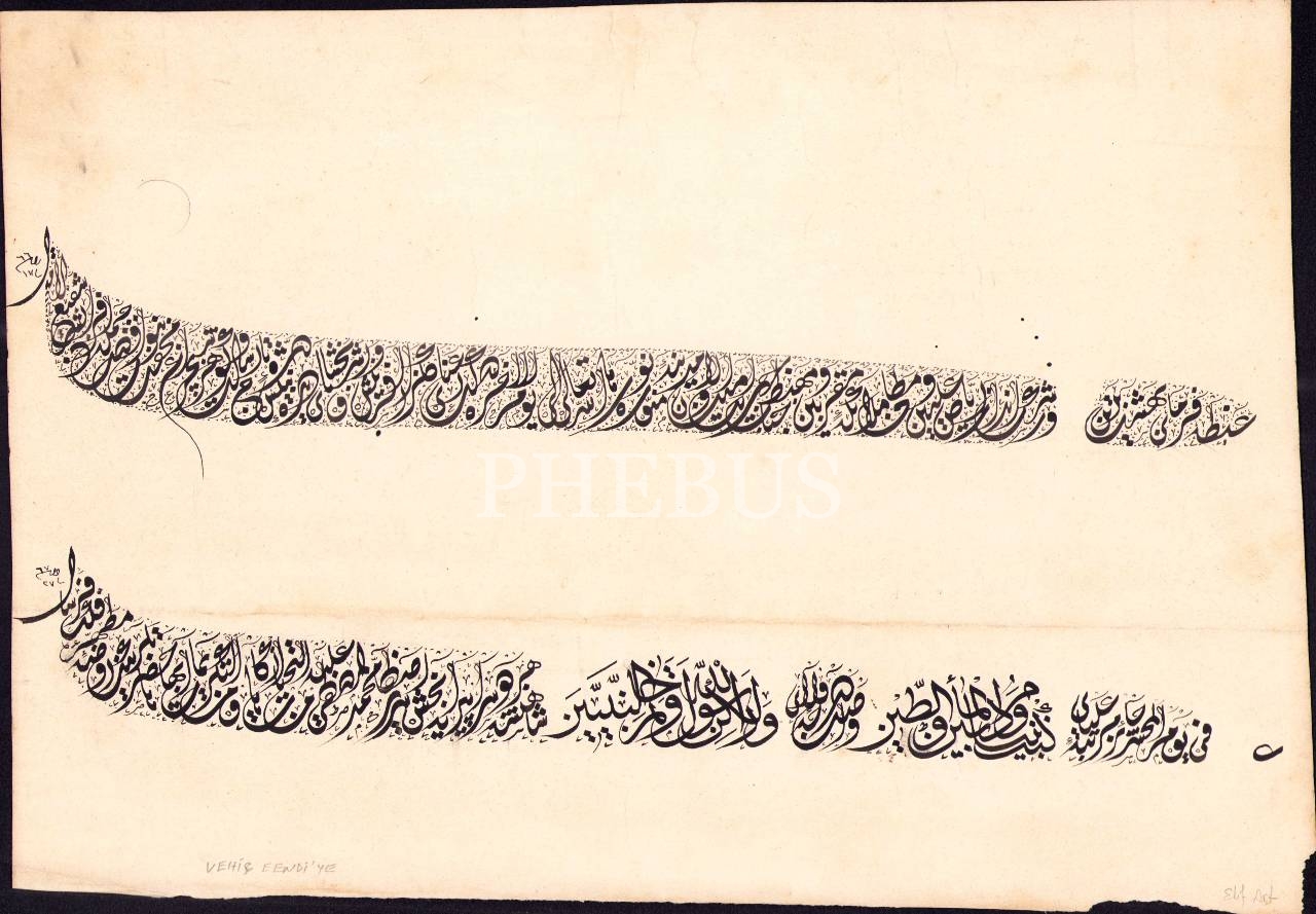 "Vehîc Efendi'ye" 1266 ve 1267 tarihli celî divanî meşk, 26x37 cm
