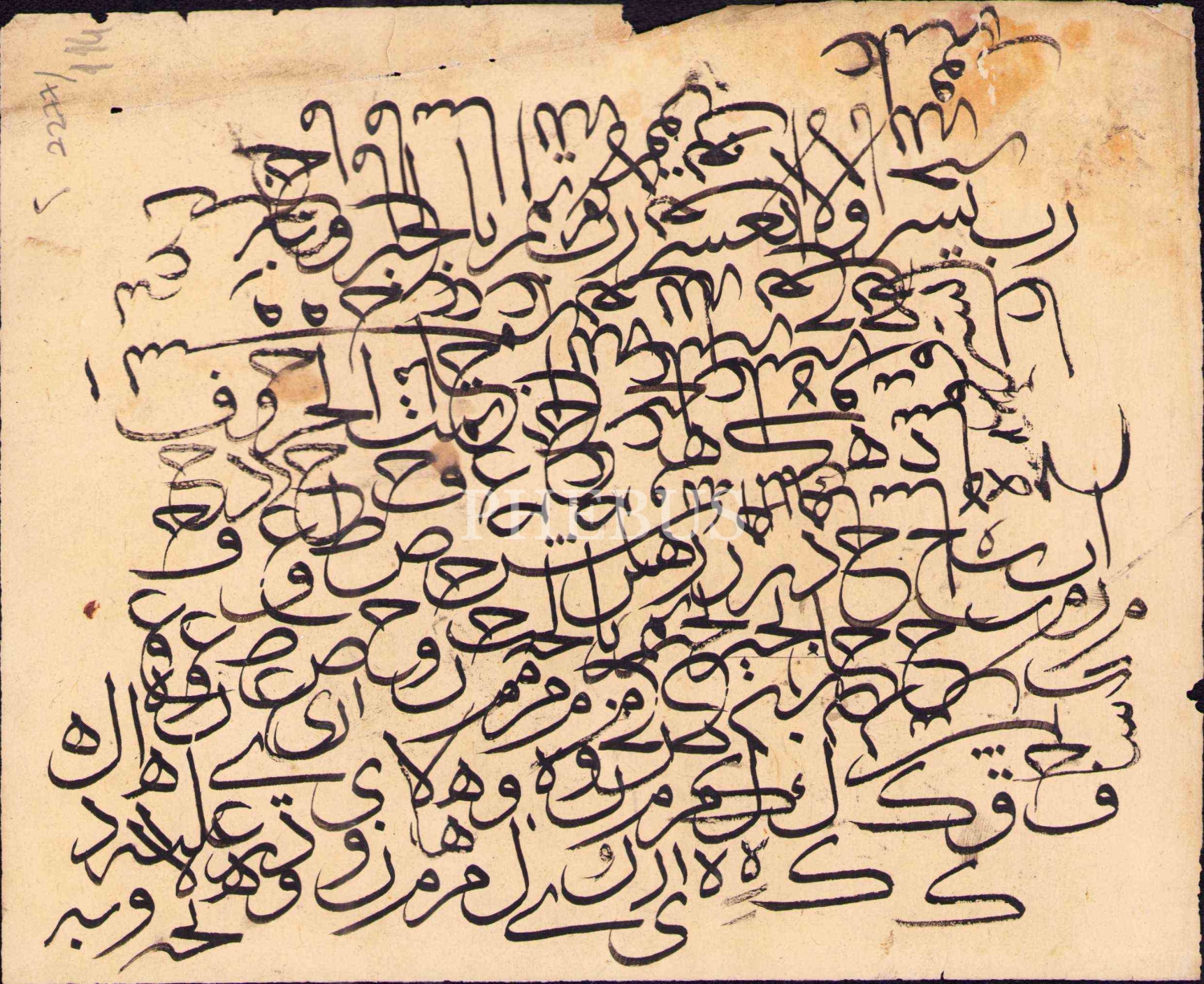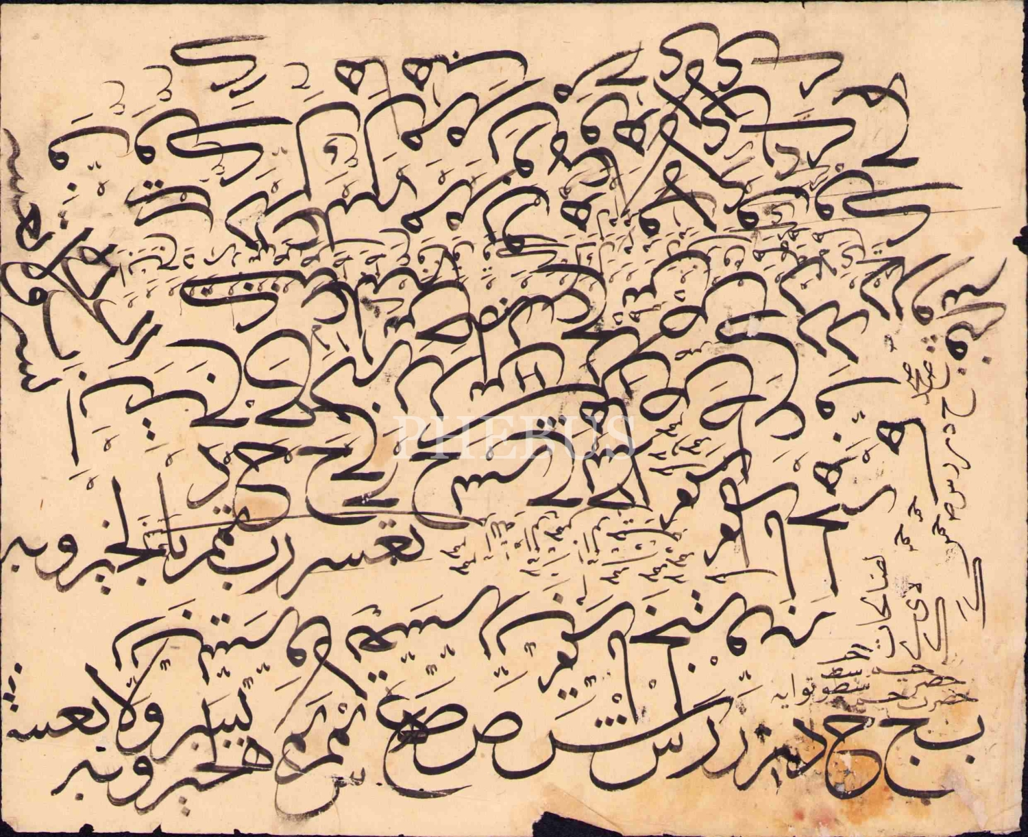 Hoca işi sülüs-nesih Rabbi Yessir ve hurufat meşki ile karalama, 17x21 cm