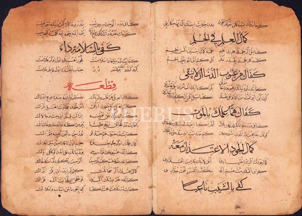 Örnek olarak; "Kefâ bi'ş-şeybi dâin: Kâfidurur kocaya kocalık maraz yeter, Kaçarsa ölümden ölüm ana tiz yeter, Gün görmemiş yaşamamış bil ki tiz beter, Gün görmüş yaşamışı kogil ki tiz yeter"?