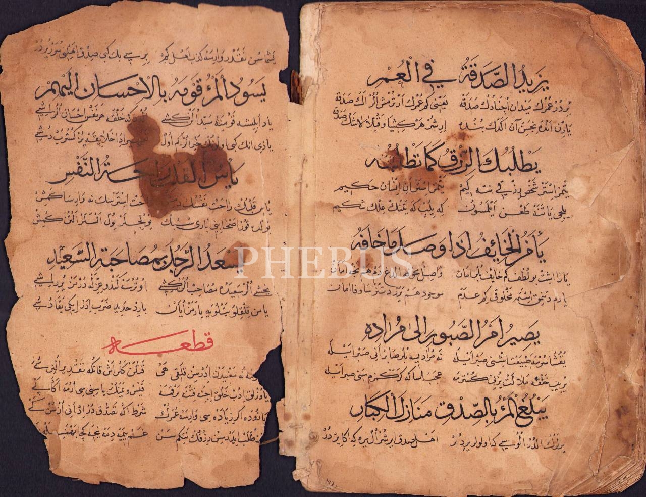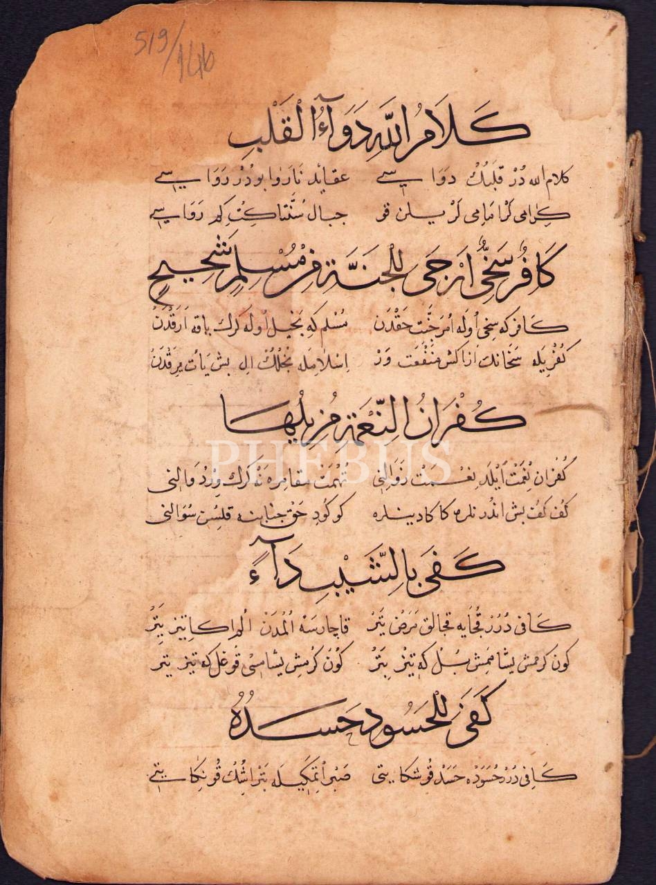 Osmanlıca açıklamaları ile Arapça özlü sözler yazması, 23 s., 17x24 cm, baştan eksik ve sayfa kenarları yıpranmış haliyle