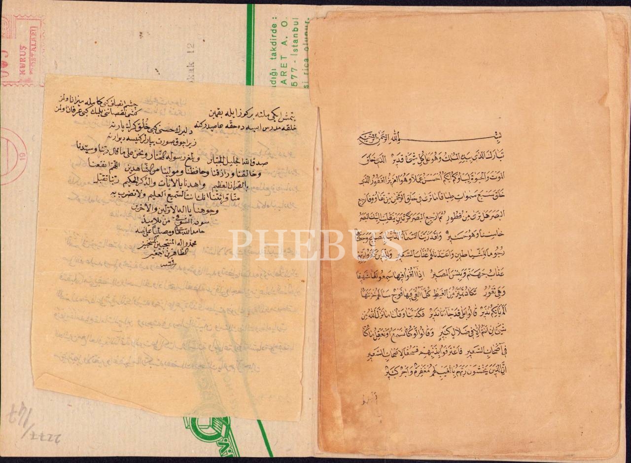 es-Seyyid İsmail Hakkı ketebeli ve 1287 tarihli el yazması Tebâreke cüzü, 19 s., 13x19 cm