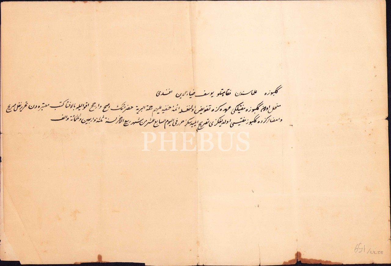 Yusuf Ziyaeddin Efendi'nin Gekbuze [Gebze] müftülüğüne atandığına dair 1343 tarihli Osmanlıca evrak, 41x55 cm
