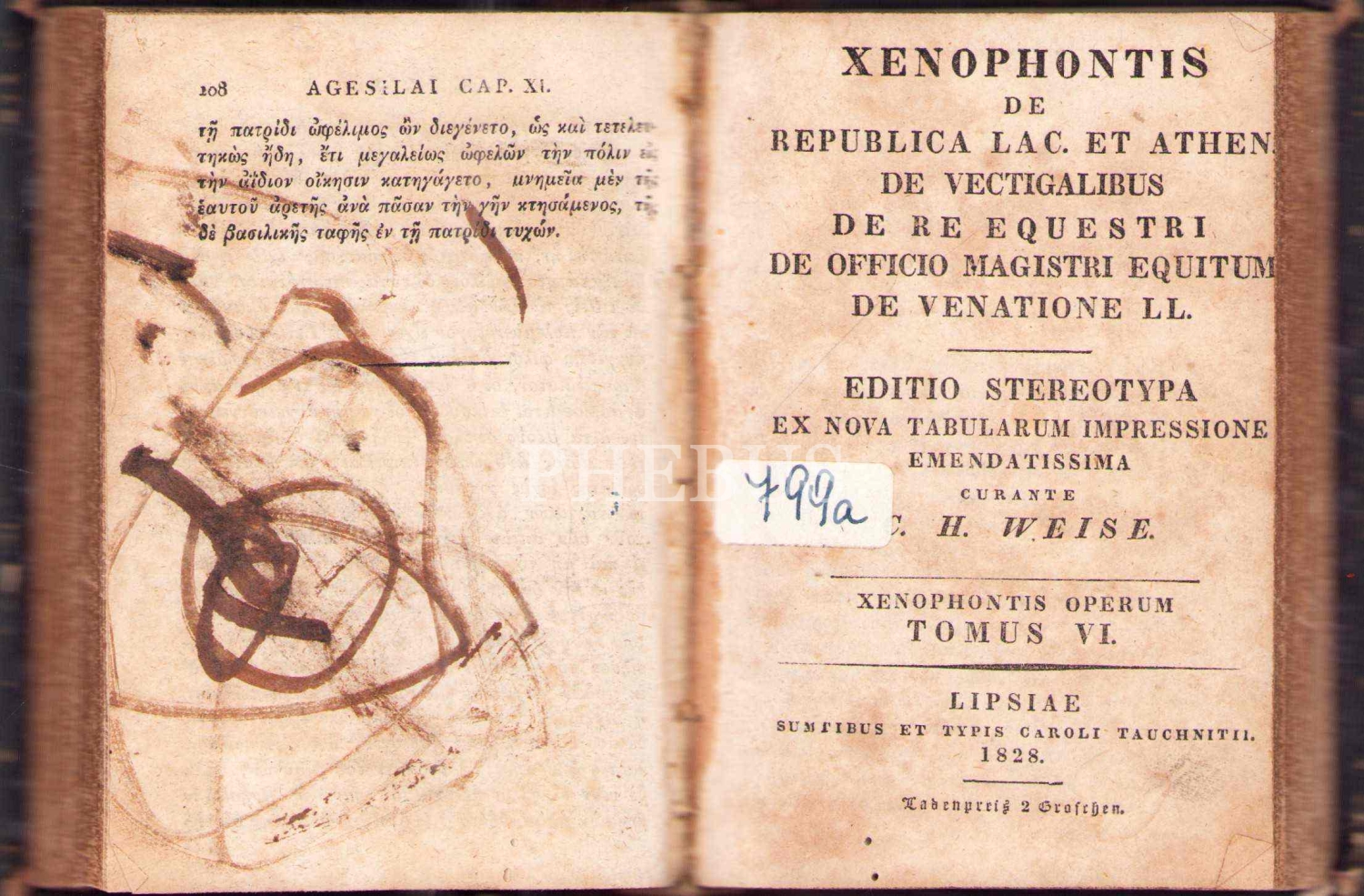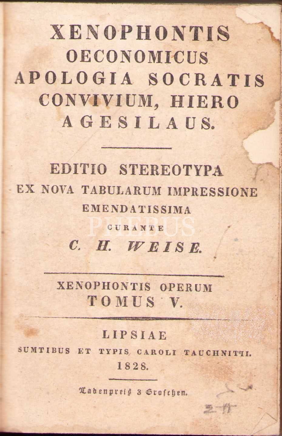 XENOPHONTIS OECONOMICUS APOLOGIA SOCRATIS CONVIVIUM HIERO A GESILAUS (Yunanca), C. H. Wiese,1828, Sumtibus et Typis Caroli Tauchnitti, 158 sayfa, 8,5 X 12,5 cm…