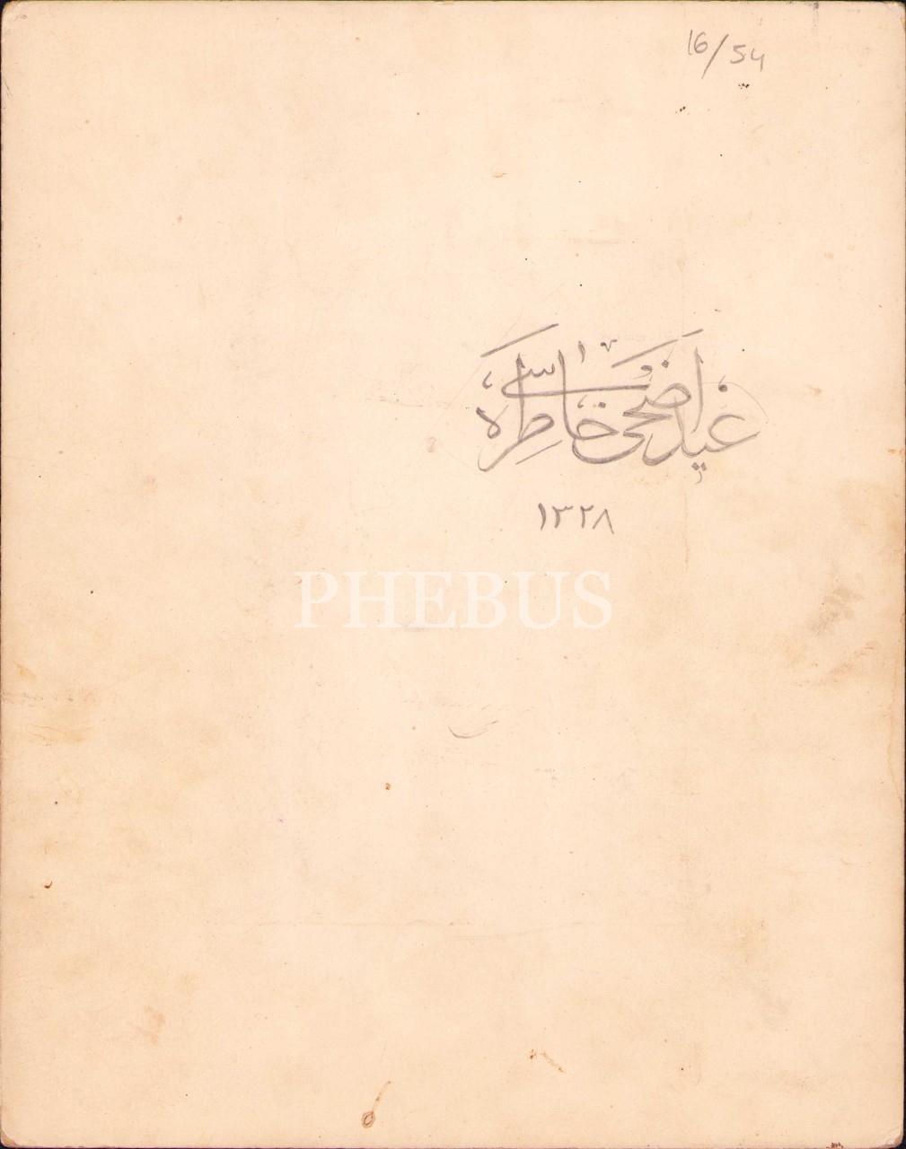1328 tarihli" Iyd-ı Adha [Kurban Bayramı] Hatırası", 22x28 cm, paspartusunun köşeleri hafif yıpranmış haliyle