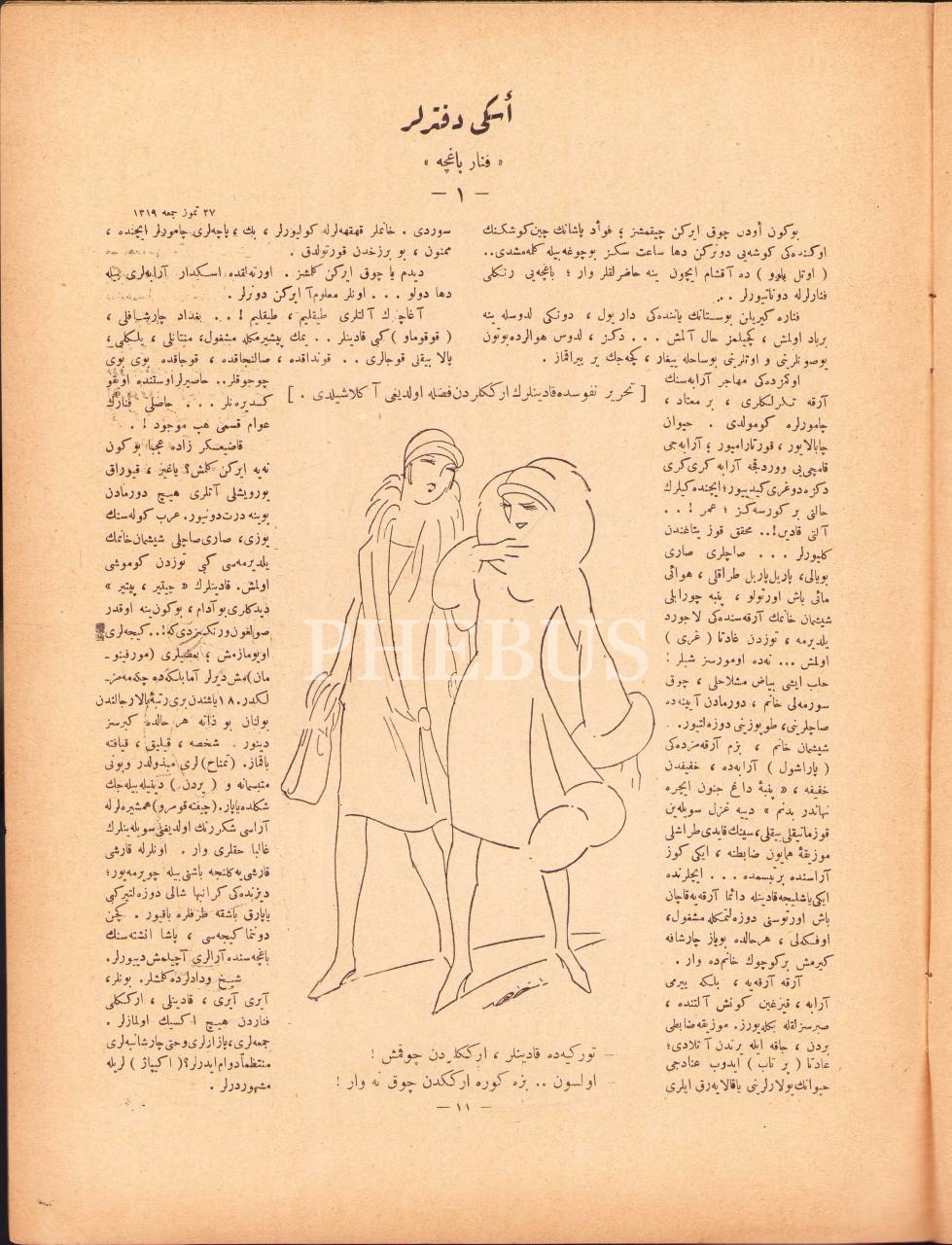 Osmanlıca Yeni Kalem dergisinin 9. sayısı, 1 Kanunuevvel 1927 İhab Hulusi imzalı ön kapak görseliyle, 23x30 cm