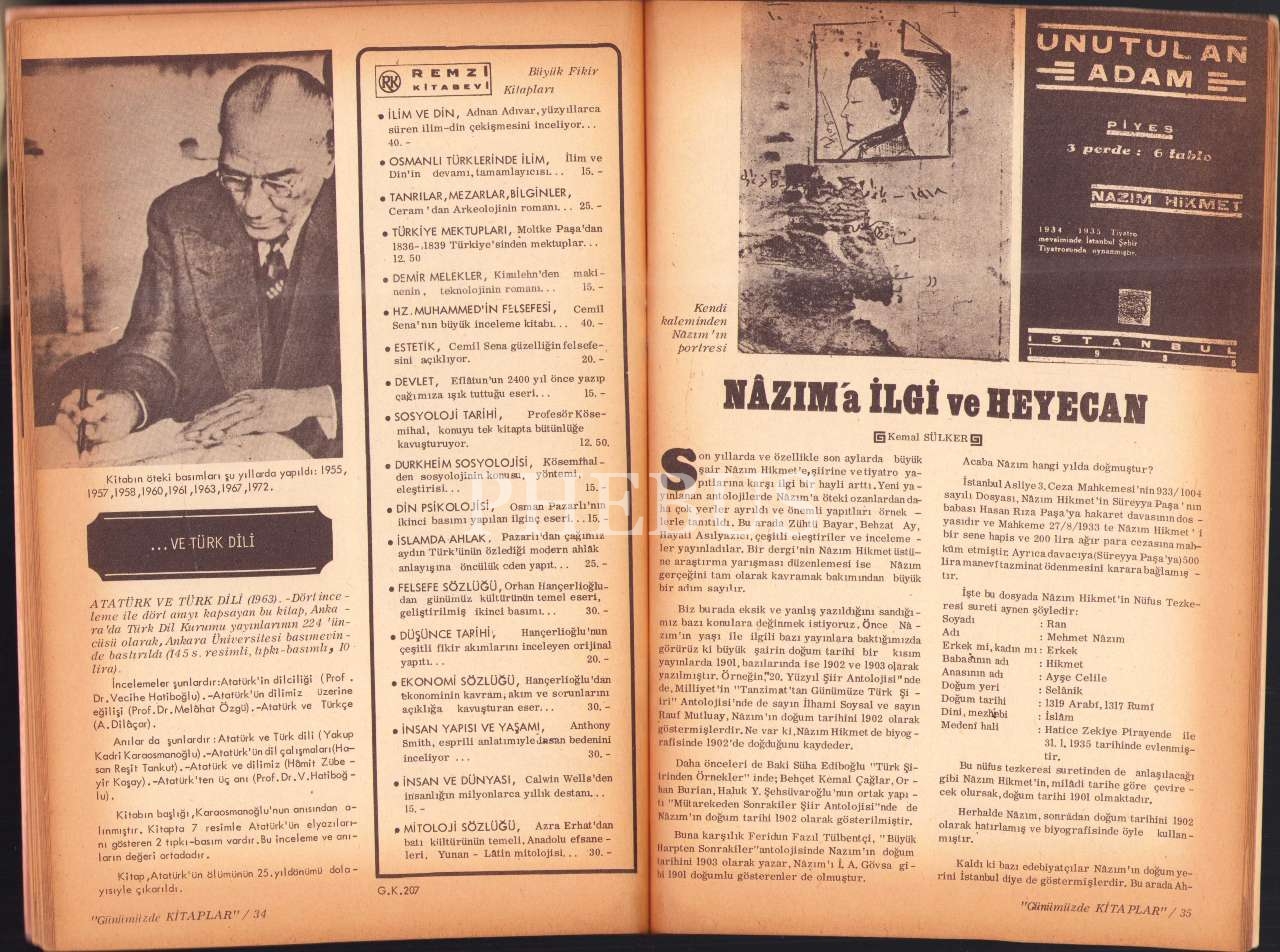 Kitap dergisi Günümüzde Kitaplar'ın 7. sayısı, Kasım 1973, 16x24 cm