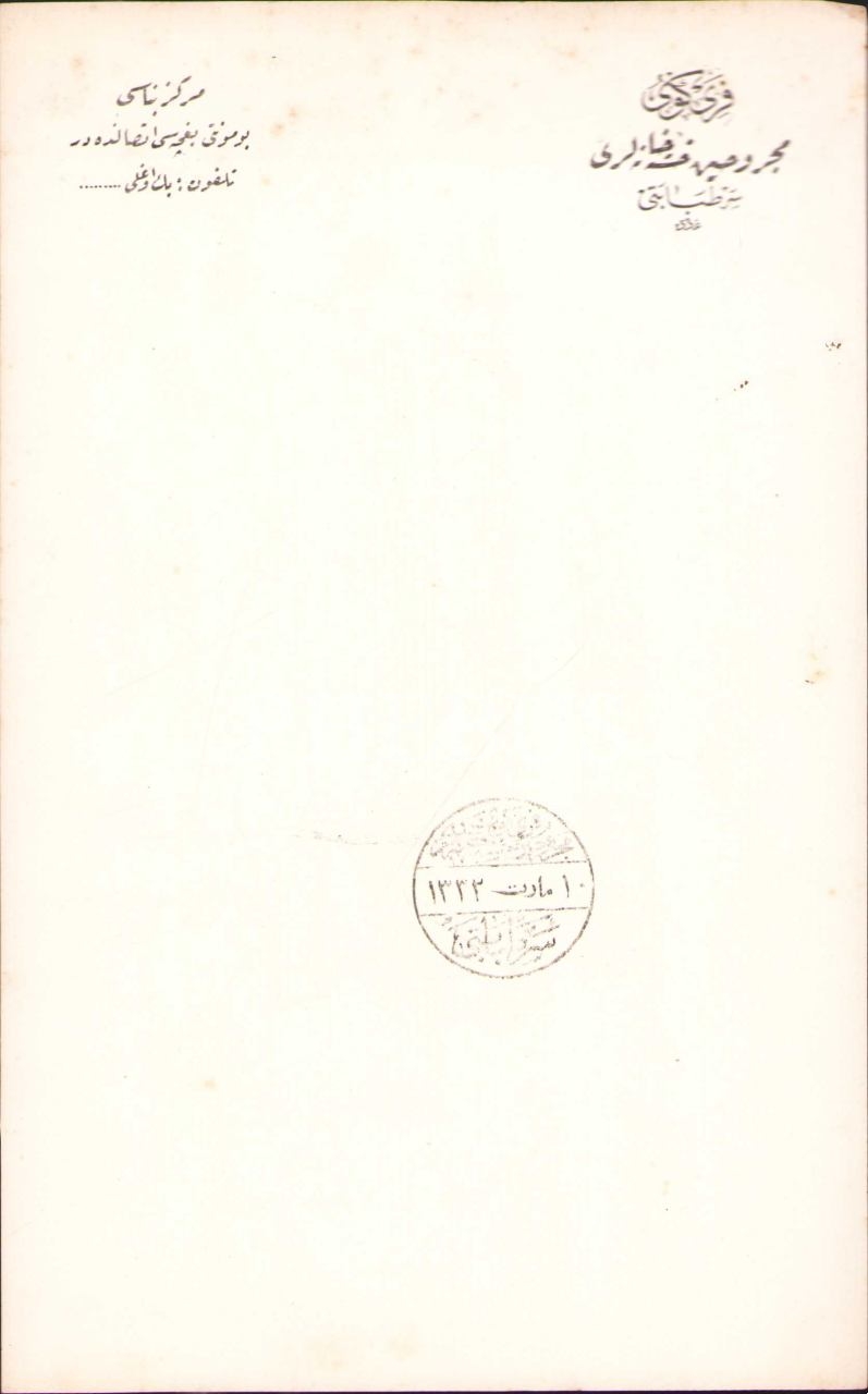 Osmanlıca Feriköy Mecruhin [Yaralı] Hastahaneleri Sertababeti antetli boş kâğıt, 14x23 cm