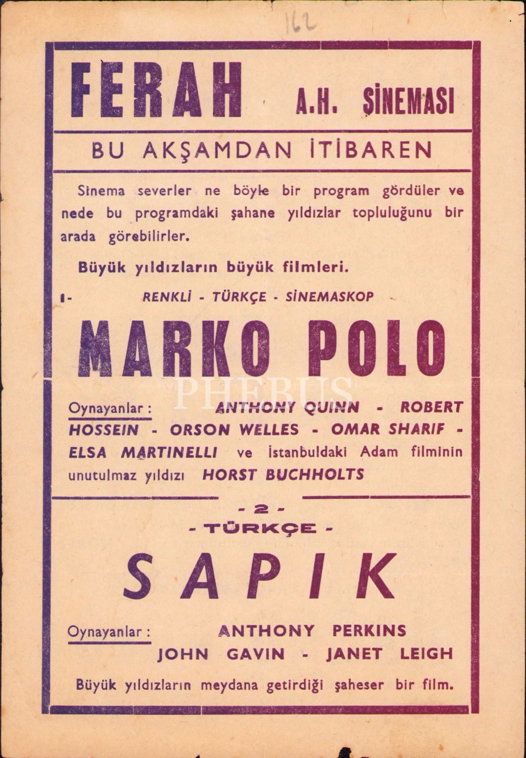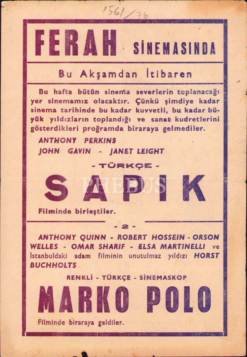 Ferah Sineması'nın film tanıtım kâğıdı, 14x20 cm