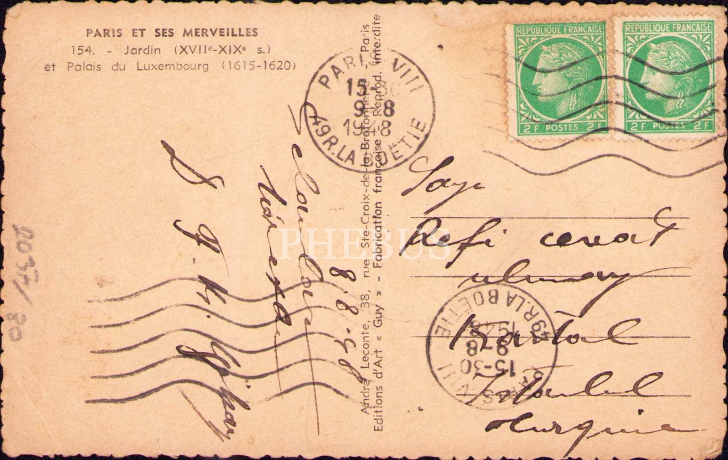 Gazeteci Refi' Cevad Ulunay'a gönderilen 2 adet kartpostal, birinin köşeleri kırık haliyle