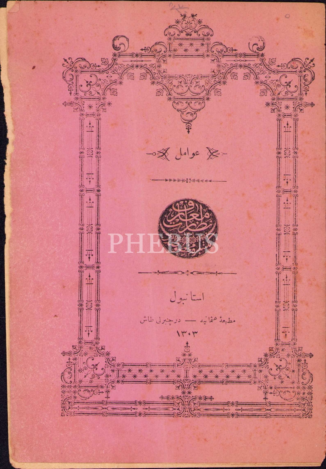 Arapça AVAMİL, Osmaniye Matbaası, İstanbul 1303, 8 s., 13x19 cm