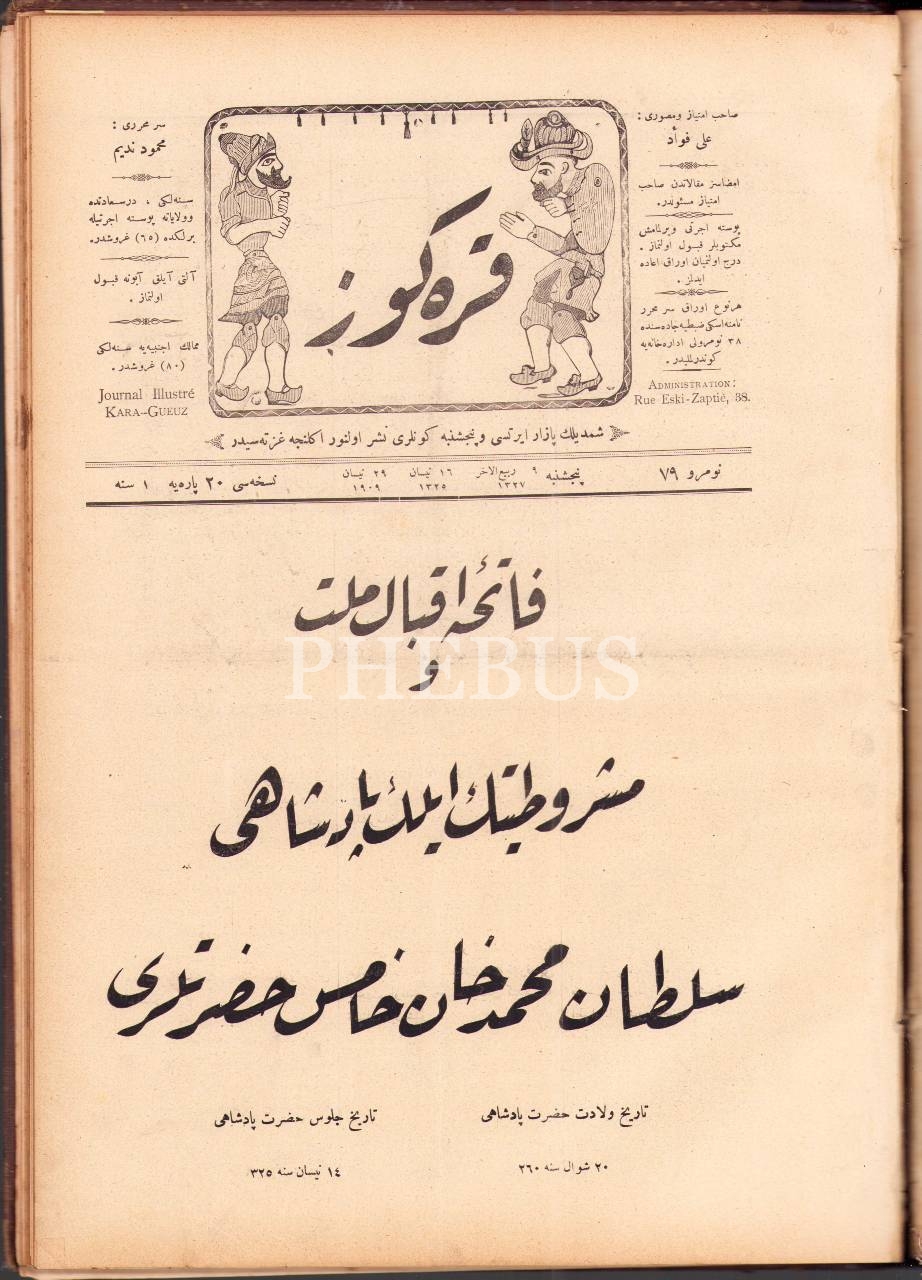 KARAGÖZ gazetesinin 1908-9 yıllarında yayınlanan ilk 104 sayısı tek ciltte, 27x39 cm