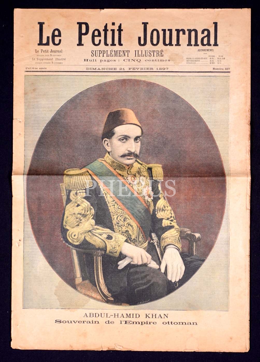 Le Petit Journal dergisinin 2. Abdülhamid'e ait kapak görselli 327. sayısı, 21 Şubat 1897, 31x45 cm, hafif yıpranmış haliyle