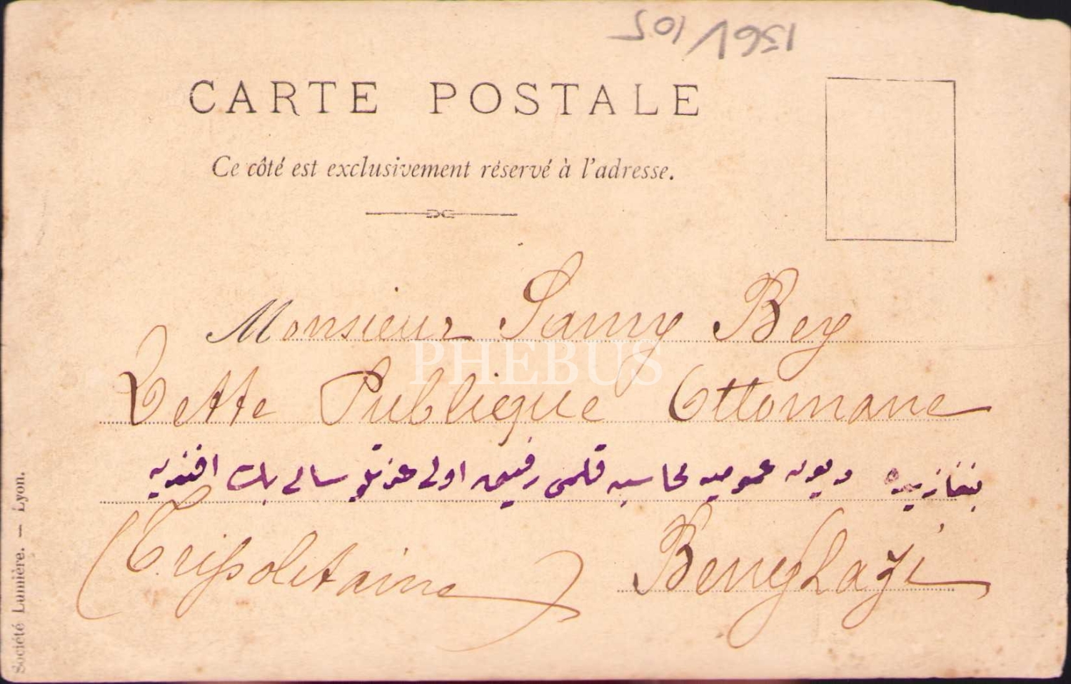 Suriye görselli Osmanlıca-Fransızca bayram tebrik kartı, yıpranmış haliyle