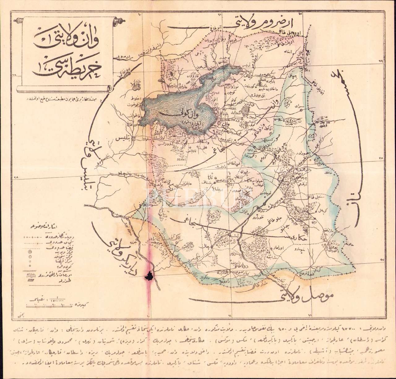 Osmanlıca Van Vilayeti haritası, 27x28 cm, delik mevcut haliyle