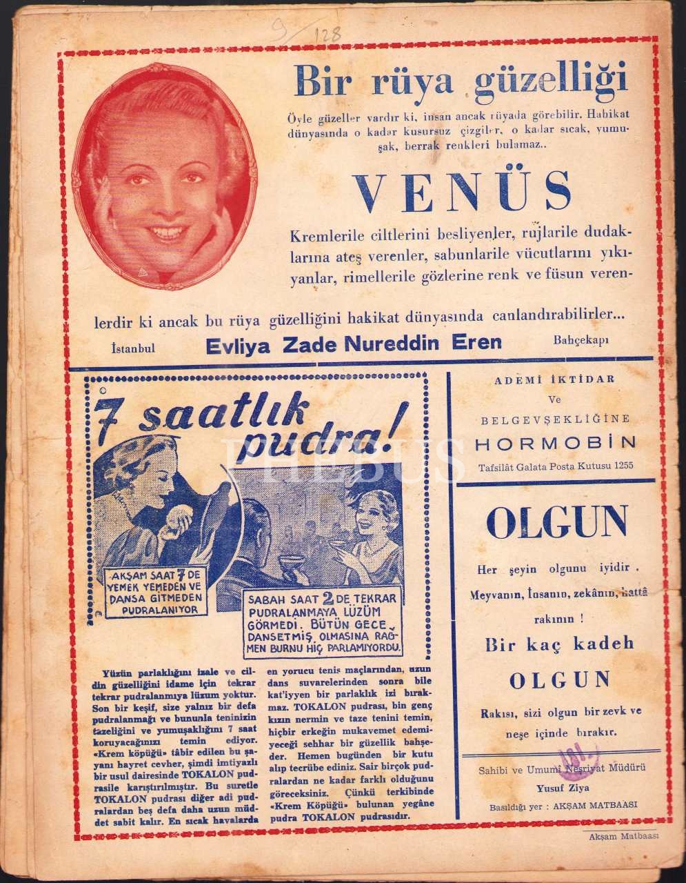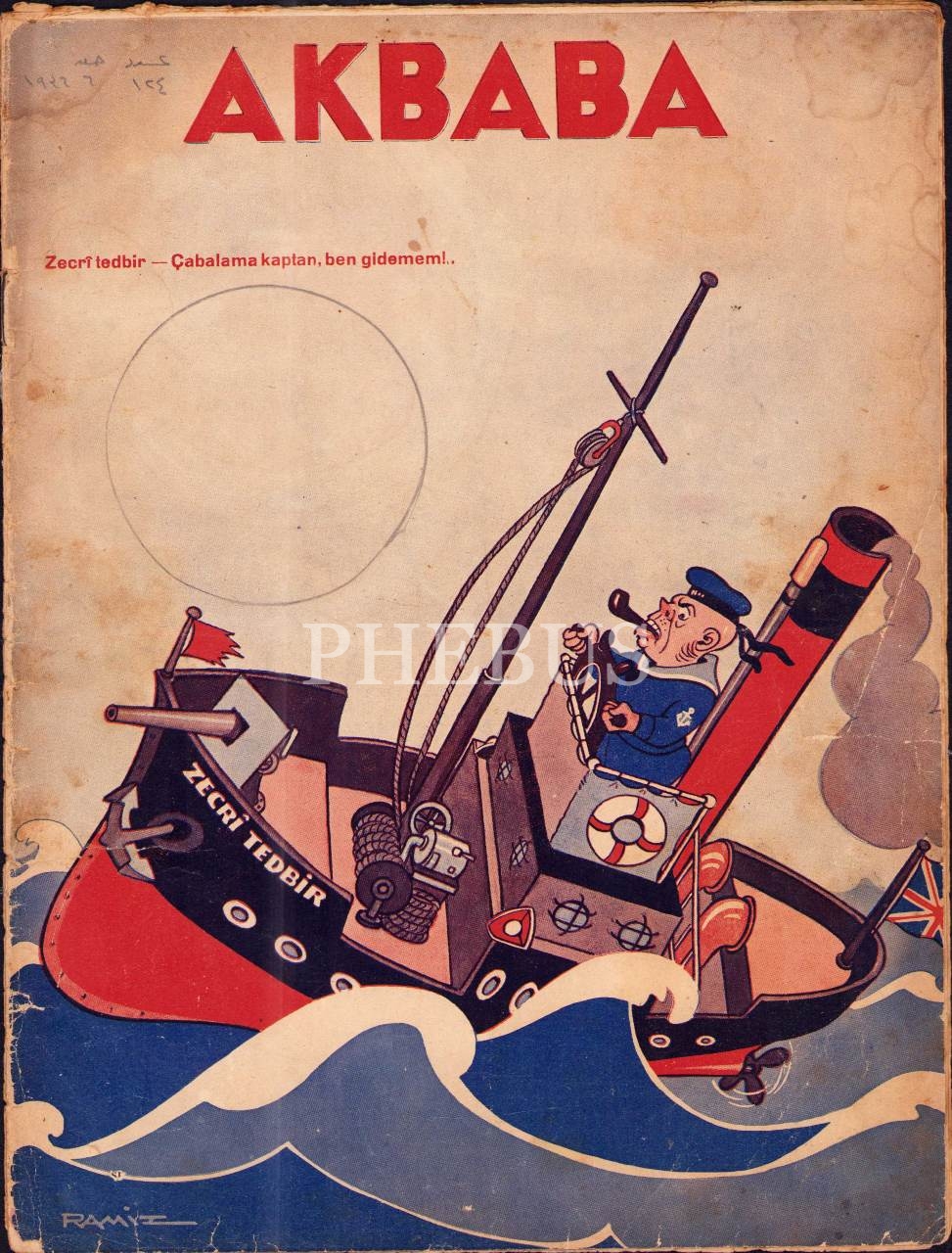 Akbaba dergisinin 124. sayısı, 23 Mayıs 1936, Ramiz imzalı kapak görseliyle, 24x31 cm, kapağı yıpranmış ve bir sayfası kesik haliyle
