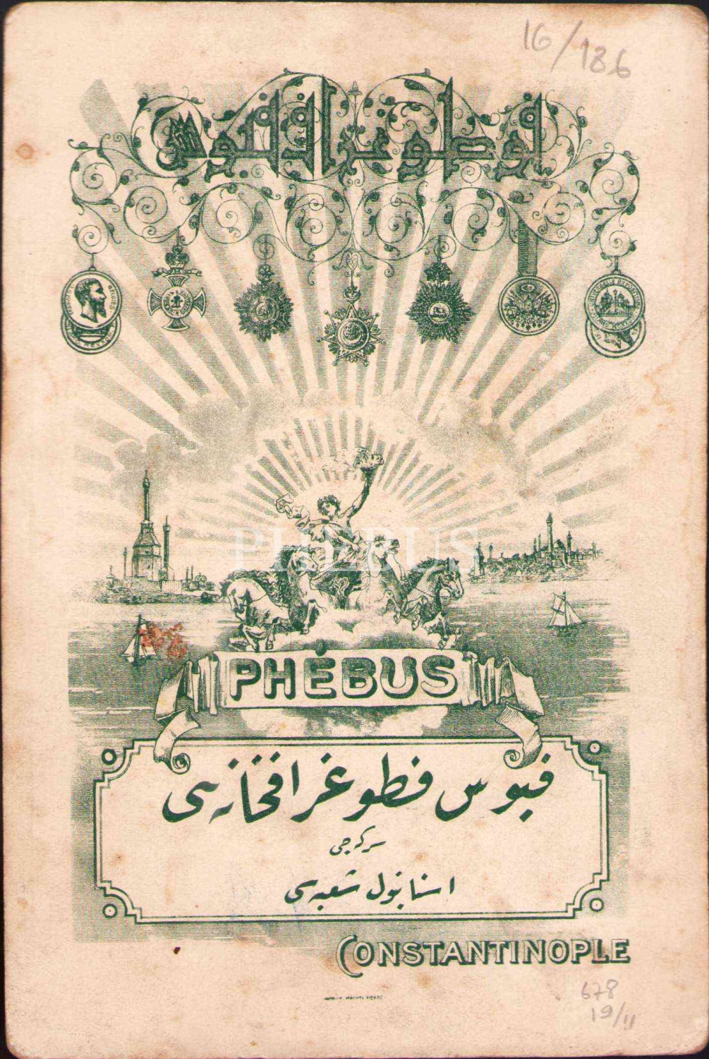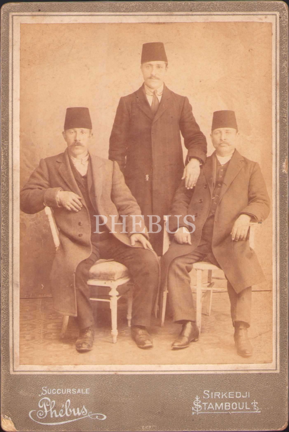 Osmanlı döneminden 3 beyefendiye ait kabin fotoğrafı, Phebus Fotoğrafhanesi-İstanbul, paspartu köşesi soyulmuş haliyle