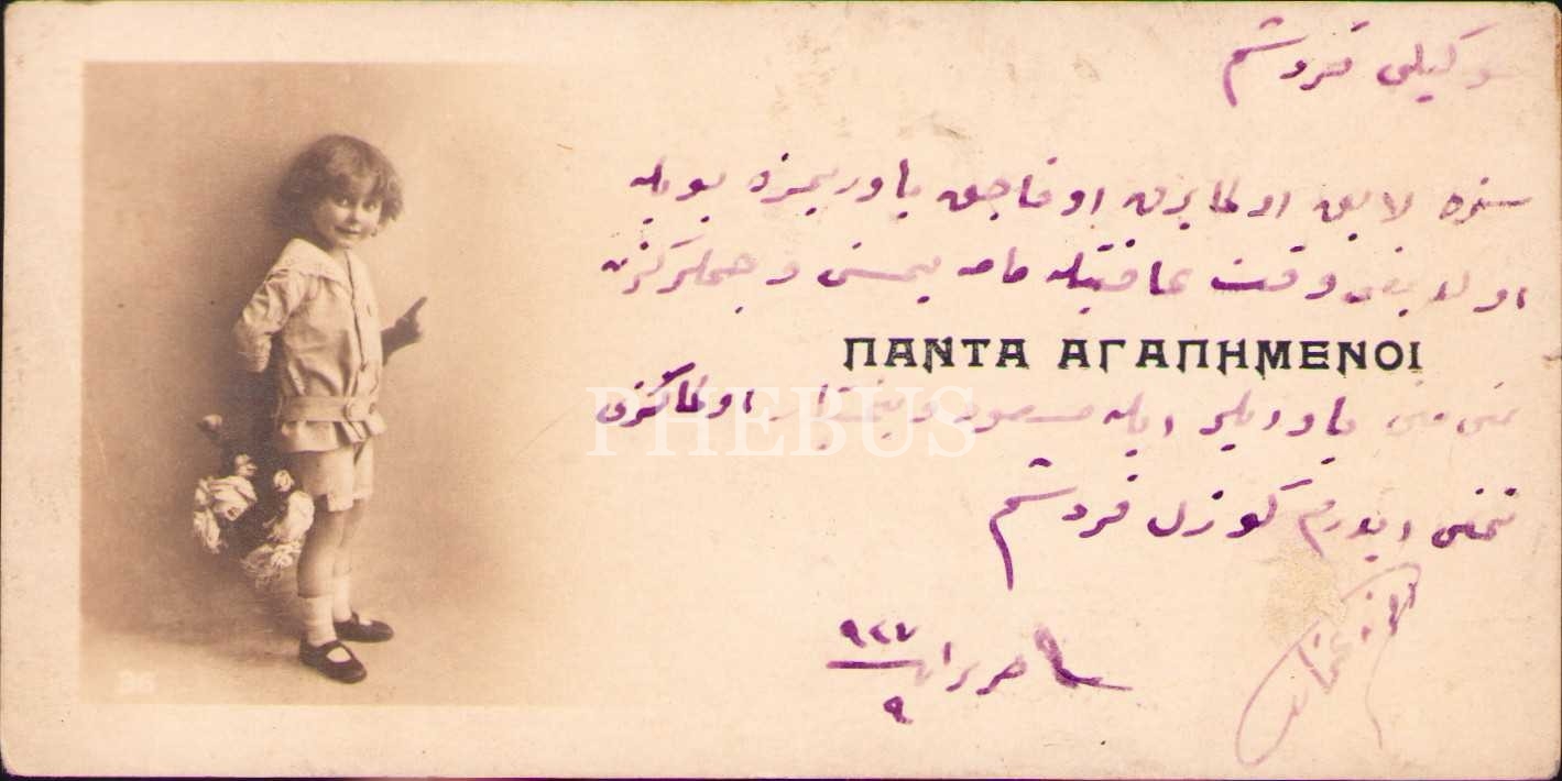 Osmanlıca ithaflı ve 1927 tarihli sevimli çocuk fotoğrafı, 6x12 cm