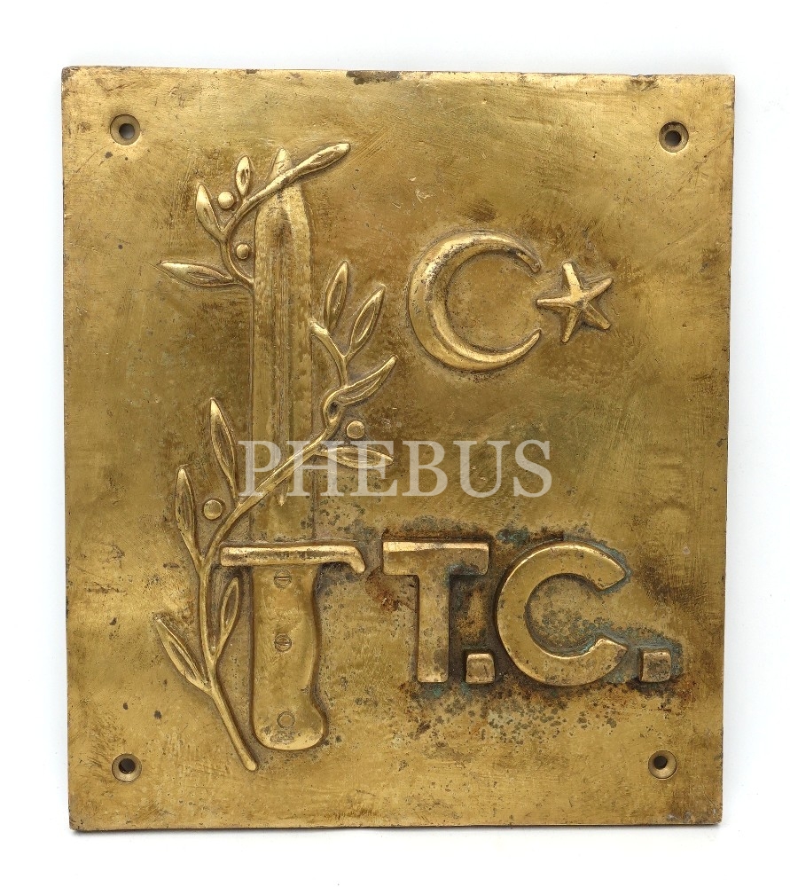 T.C. Yazılı ve ay yıldızlı pirinç rölyef, 22x25 cm